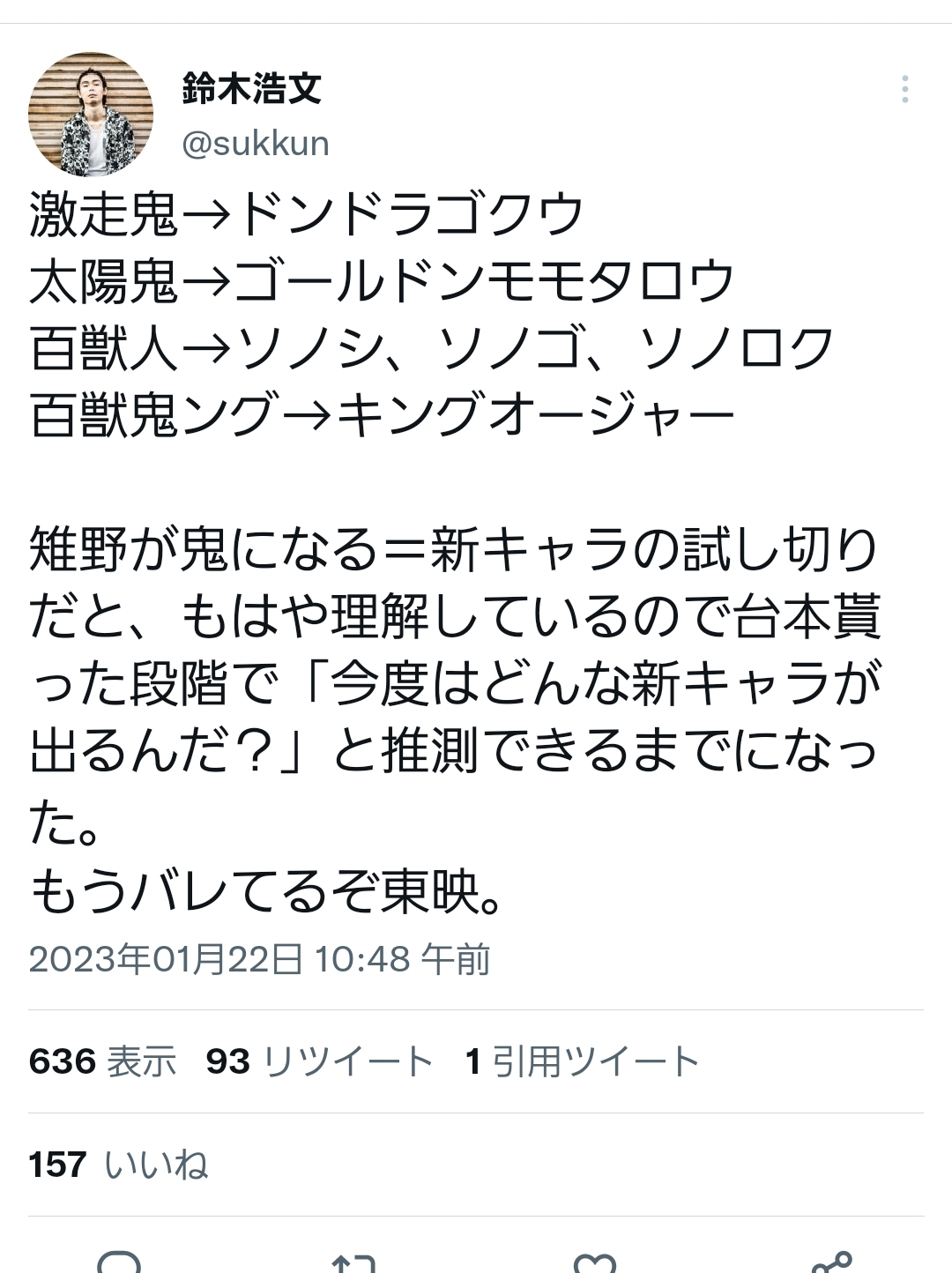それはそう(妄愛に肩まで…というか頭頂部まで沈んでる)今日のドンブラ期間限定配信するのね