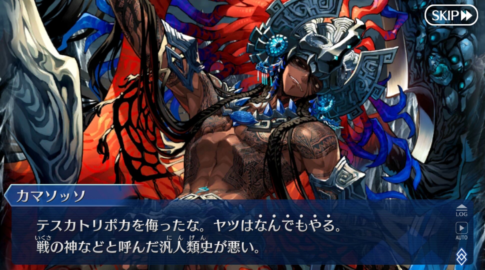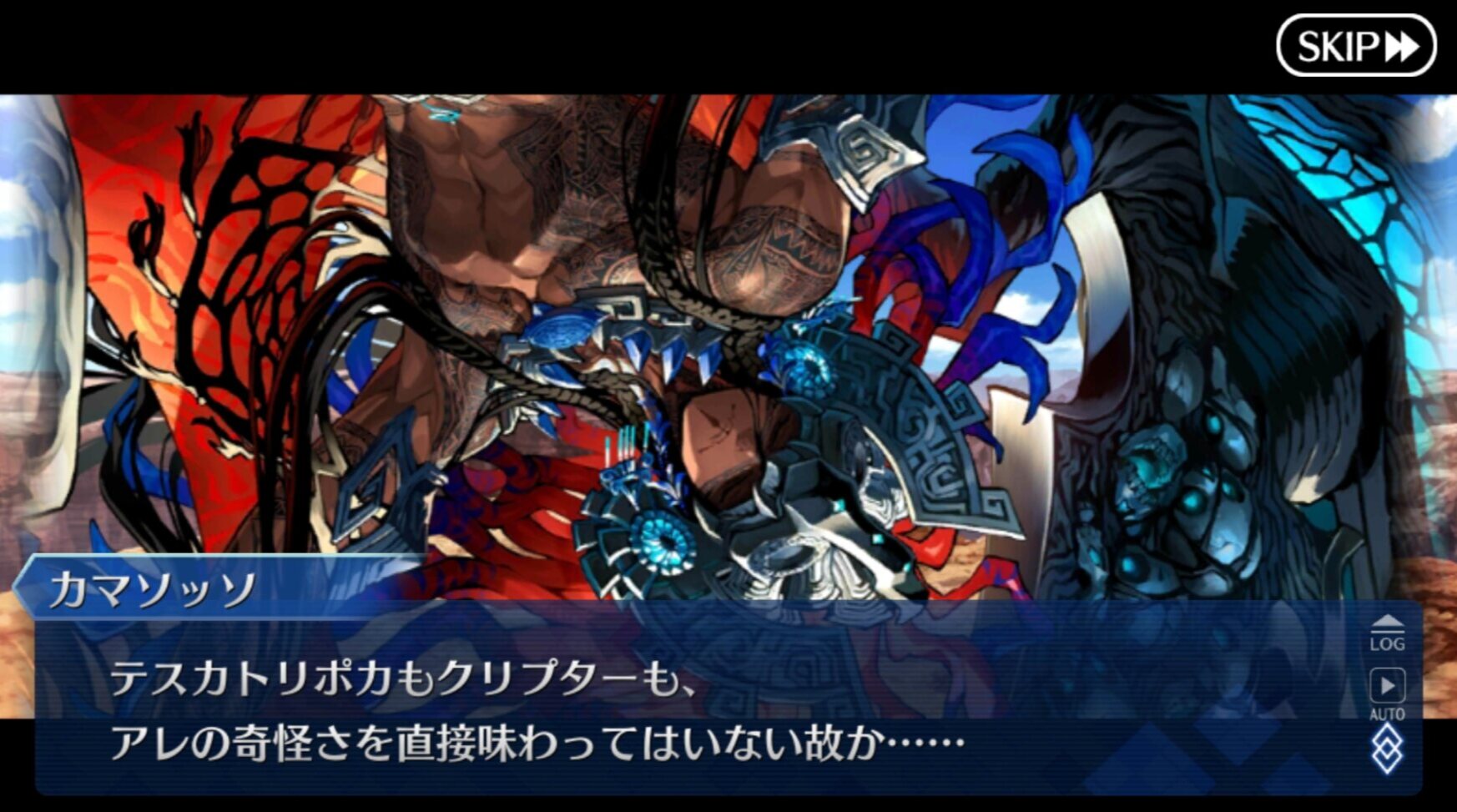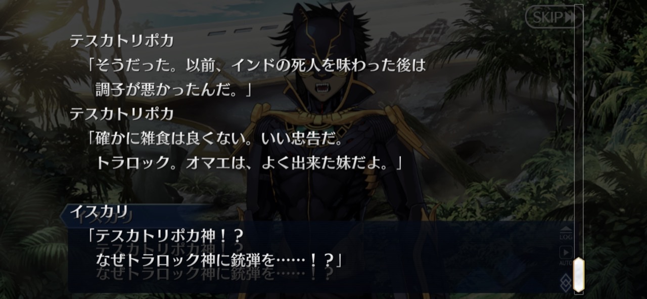 焚き火前テスカ(=武器商人テスカ=黒?)が青の考え云々って言ってたけど、あれが四神合体キングテスカトリポカ(仮称)的なやつならその状態で落下するぐだを見て戦士認定したって事で筋は通る………のかな?1000ならみんなで鍋パーティ