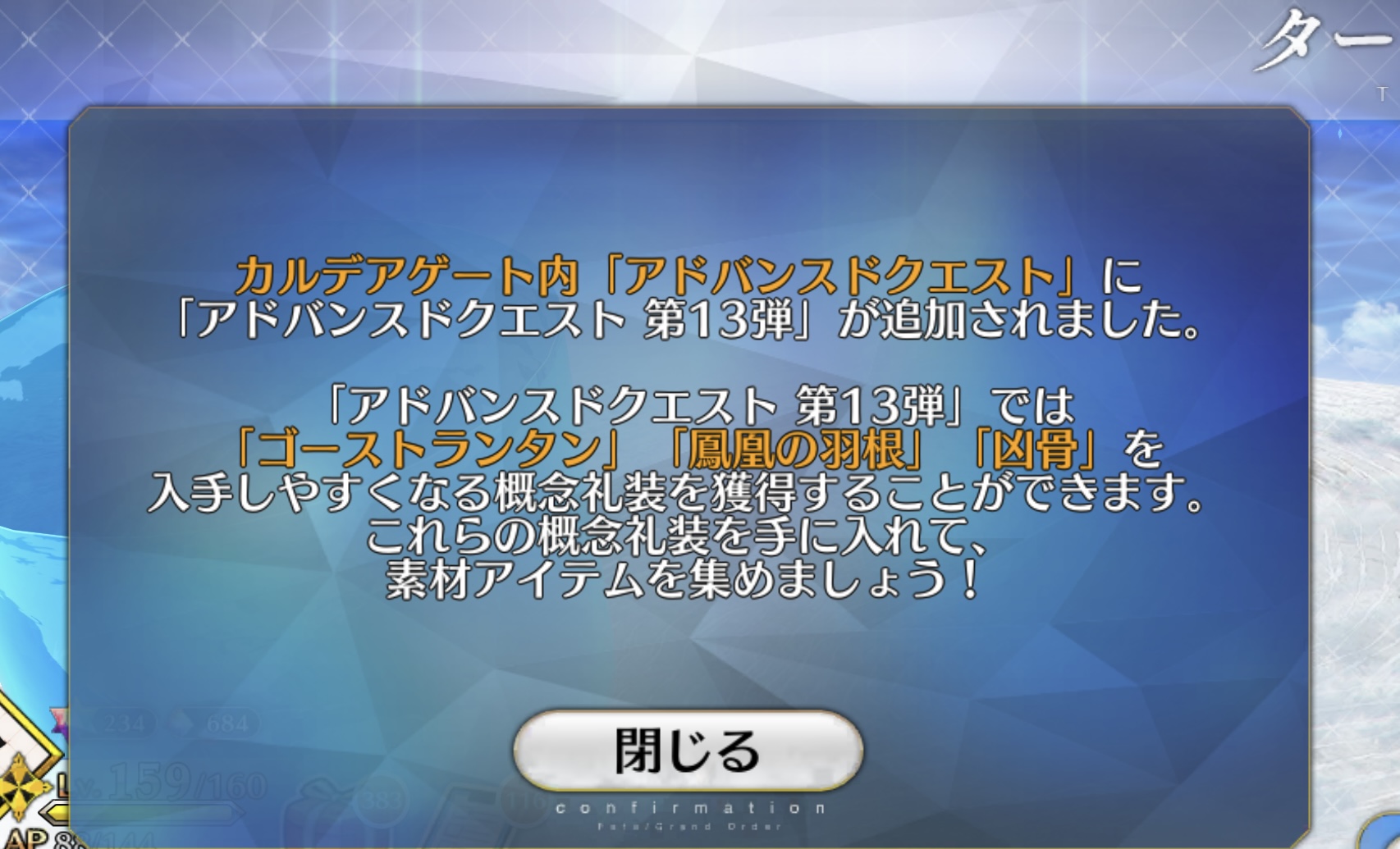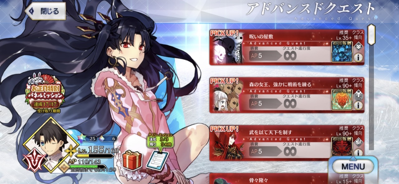 ありがとうただいま帰宅。そういえばアドバンスドクエストは月一追加のペースであるんだっけ