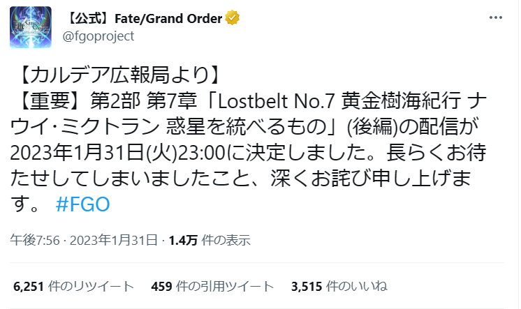 カルデアはORTと戦って、ユーザーは情報と戦って、運営さんはリリースと戦ってる界域戦争よ…>>975