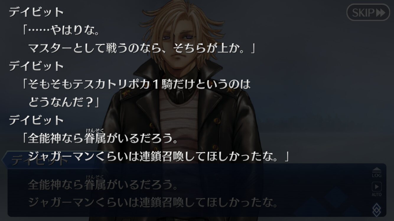 本当にありがとうございますデイビットも救う対象が違った感じよねマスター達は汎人類史を救うために戦ってるけどデイビットは銀河全体を救うために戦ってたから相容れない。