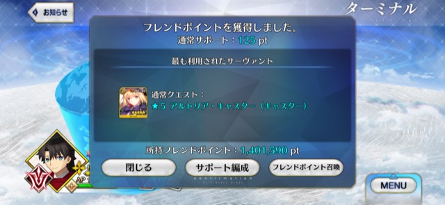 忘れもしませぬ、仲間の声援と全てのGストーンの力を受け継いで放ったカマソッソクラッシャーで異聞帯にトドメを刺したシーン、胸が熱くなりましたねカマソッソがもしカルデアに来たら、色んなオルタ鯖を見た時のリアクションが気になる