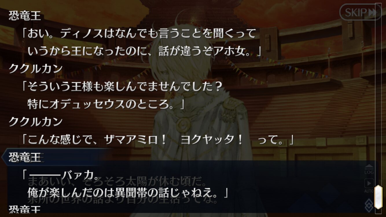異聞帯の戦いであっても、やらなければならないオーダーとか生きるために戦うそういうのだったけど、そうじゃなく徹底的に辛辣とか煽りまくってたしモンテスマの魂的な感じだったイスカリそういう意味だとキングゥ的な感じよね。