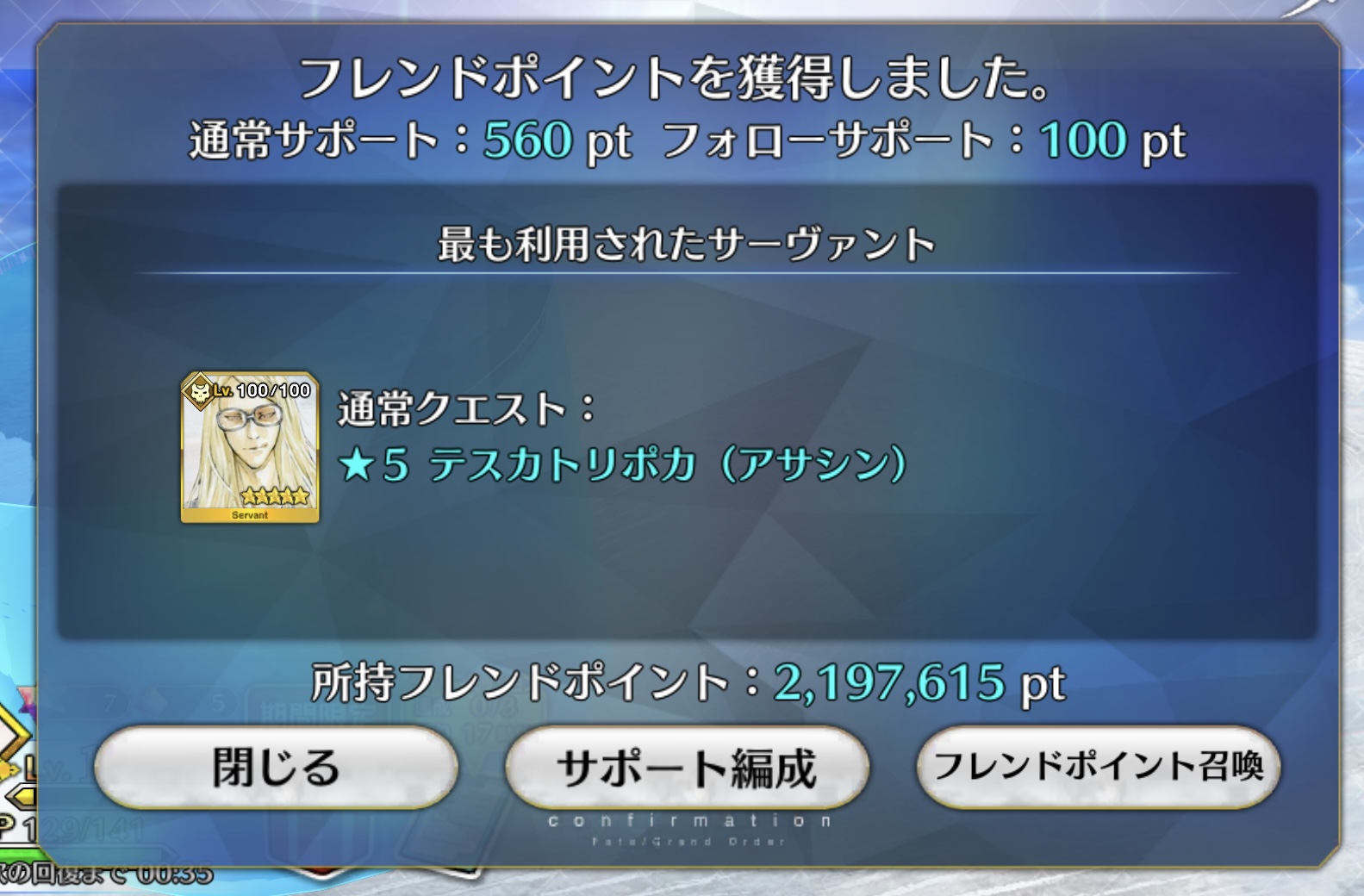 忘れよ!忘れよ!今更かもだけど、テスカんジャガーのクエスト、翁出てきてるのは引き継ぎ作業か何かなのか、それともマイルームセリフにあるように、やらかしたから負けてくれてるのかな?(霊衣に必要な黒曜石と塵を見ながら)