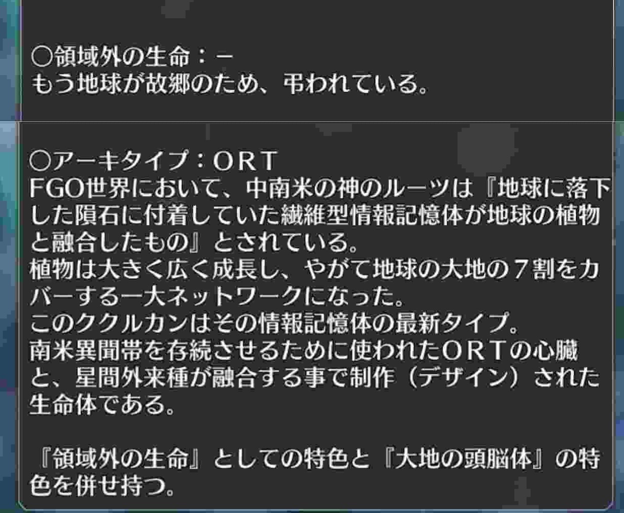 異聞帯の王、異聞帯ミクトランの神、ORTの心臓の化身、マィヤの意志を実行するやつ、アーキタイプ