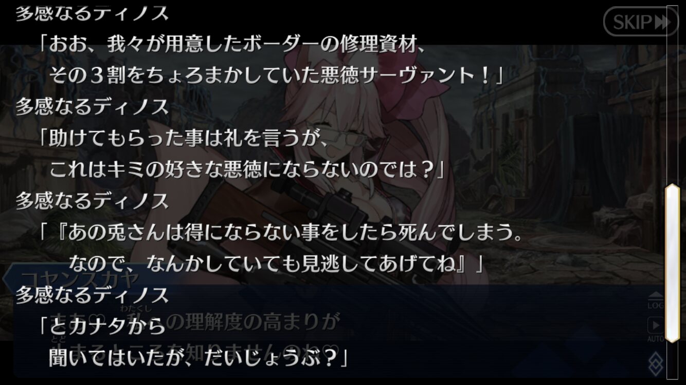 サッカが出来るんだからきっとそんなチームプレイもできる第七異聞帯は敵の規模は歴代最強だったけどディノス達の善性と穏やかさのおかげでクリア後もそんなにモヤモヤする感じはなかったかな