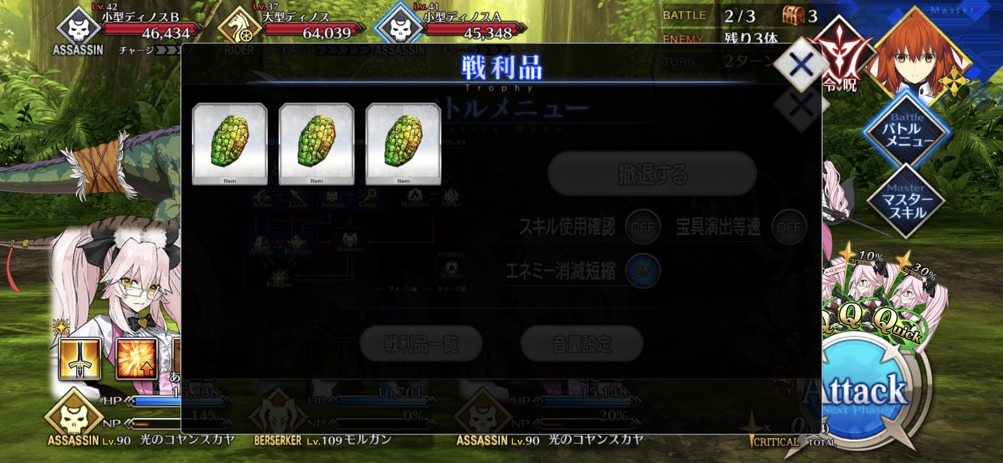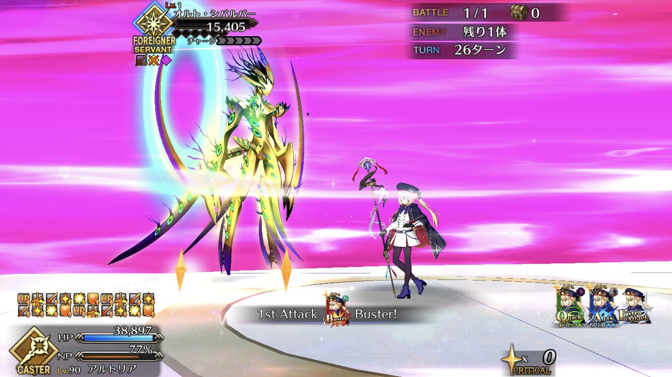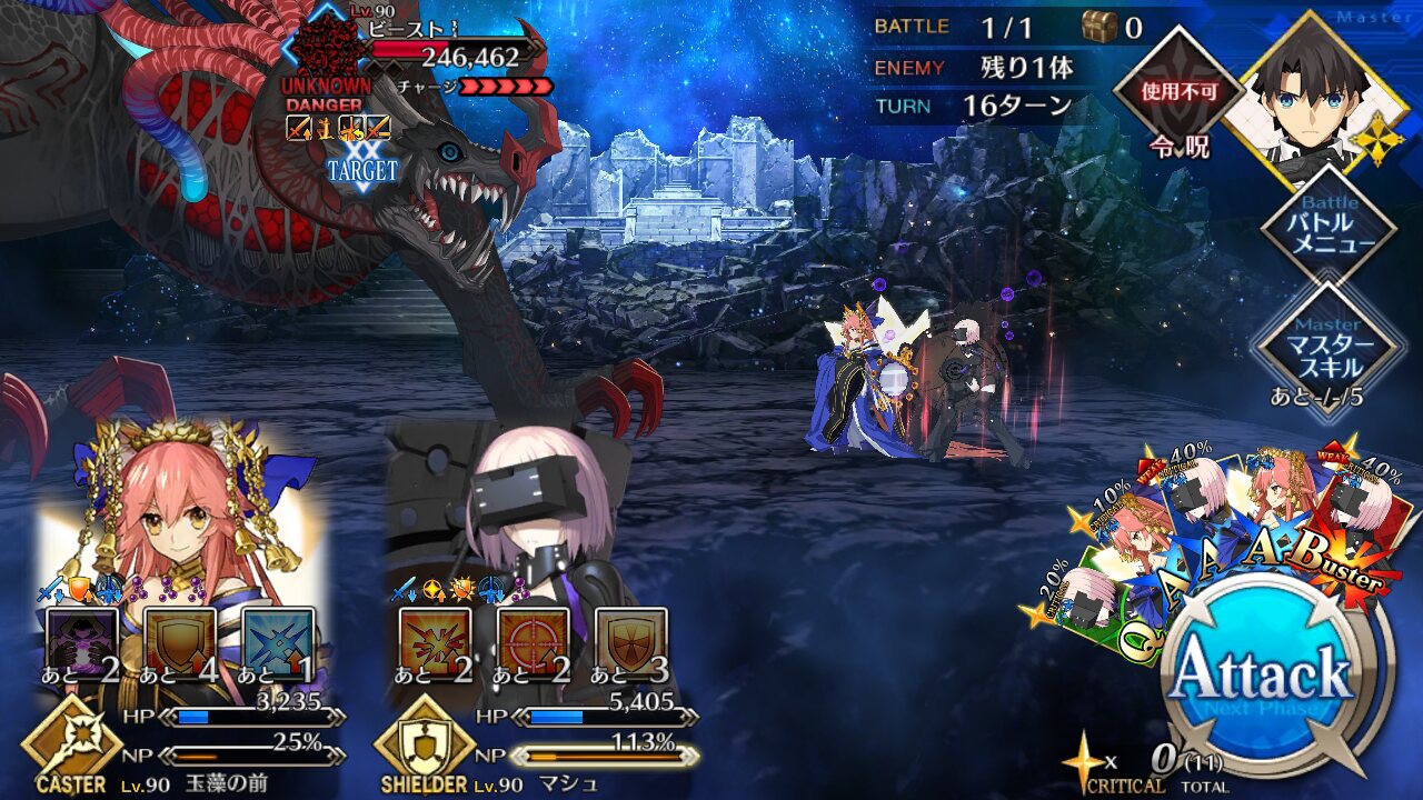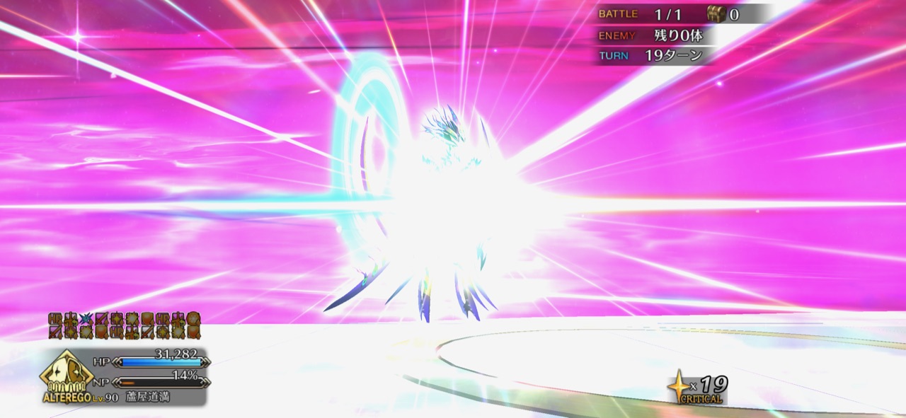 ガネーシャ様すげえ、殿に入れといたら最後の赤ゲージ(ガッツ含む)はソロで全部削り切ってくれた……なんかこの章進めてたら第四魔法はFGOで明かされそうな気がしてきた