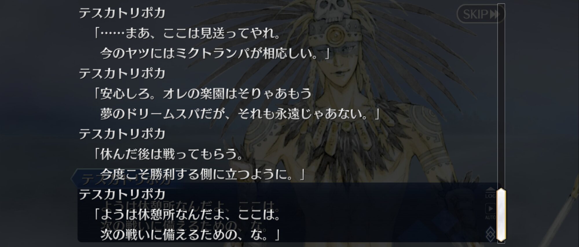 縁があるのは分かっていたと思う。オセロトル語解読でも「焚火に捧げる」みたいな感じの訳になってたのでテスカポリトカ所縁のブツだってことは認識してた。だから砂糖菓子なのに食さなかったしあの場ヴクブに渡して次の戦士に渡せ的に言ってたと思う。>>61