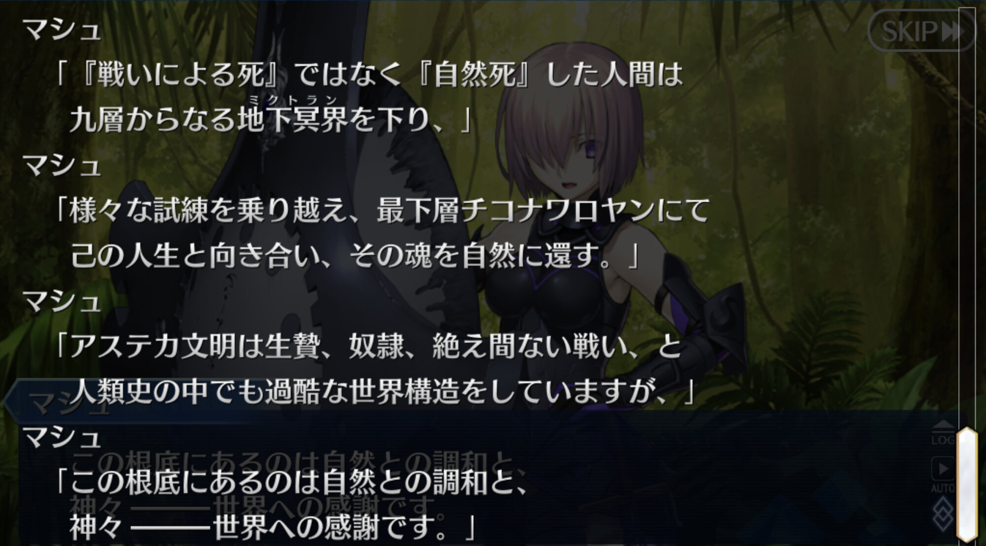 なんでもアステカの伝承では死者が生まれ変わる為に必要な試練らしい、多分それは異聞帯のミクトランでも同じ……だと思うんだけど、