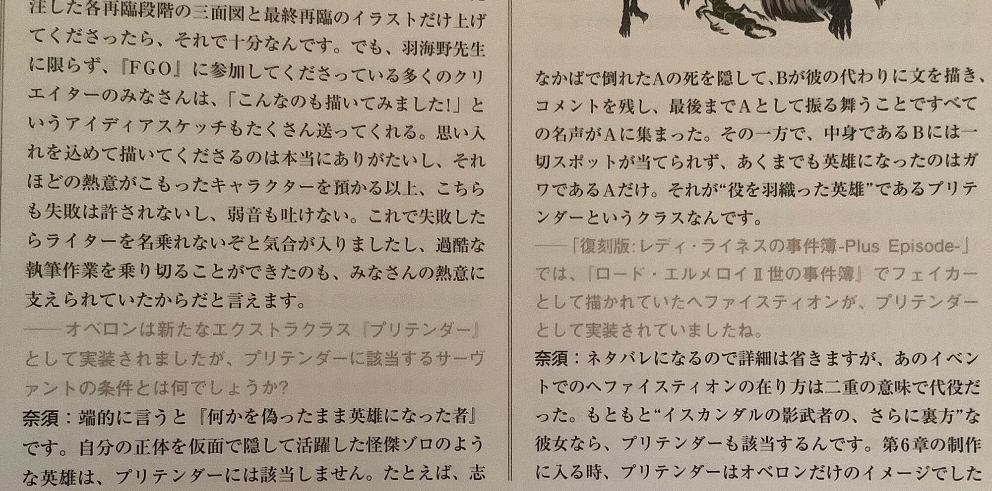 オベロンのクラス偽装やへファイスティオンの「王の軍勢」使用時の詠唱を考えると詐称者クラスの特性に「現在のステータスが既に偽りなのでさらに他の詐称を重ねてもペナルティがない」みたいなのがありそうだな牢獄にいるカドックがサーヴァントを連れて脱出しないことを疑問に思い、
