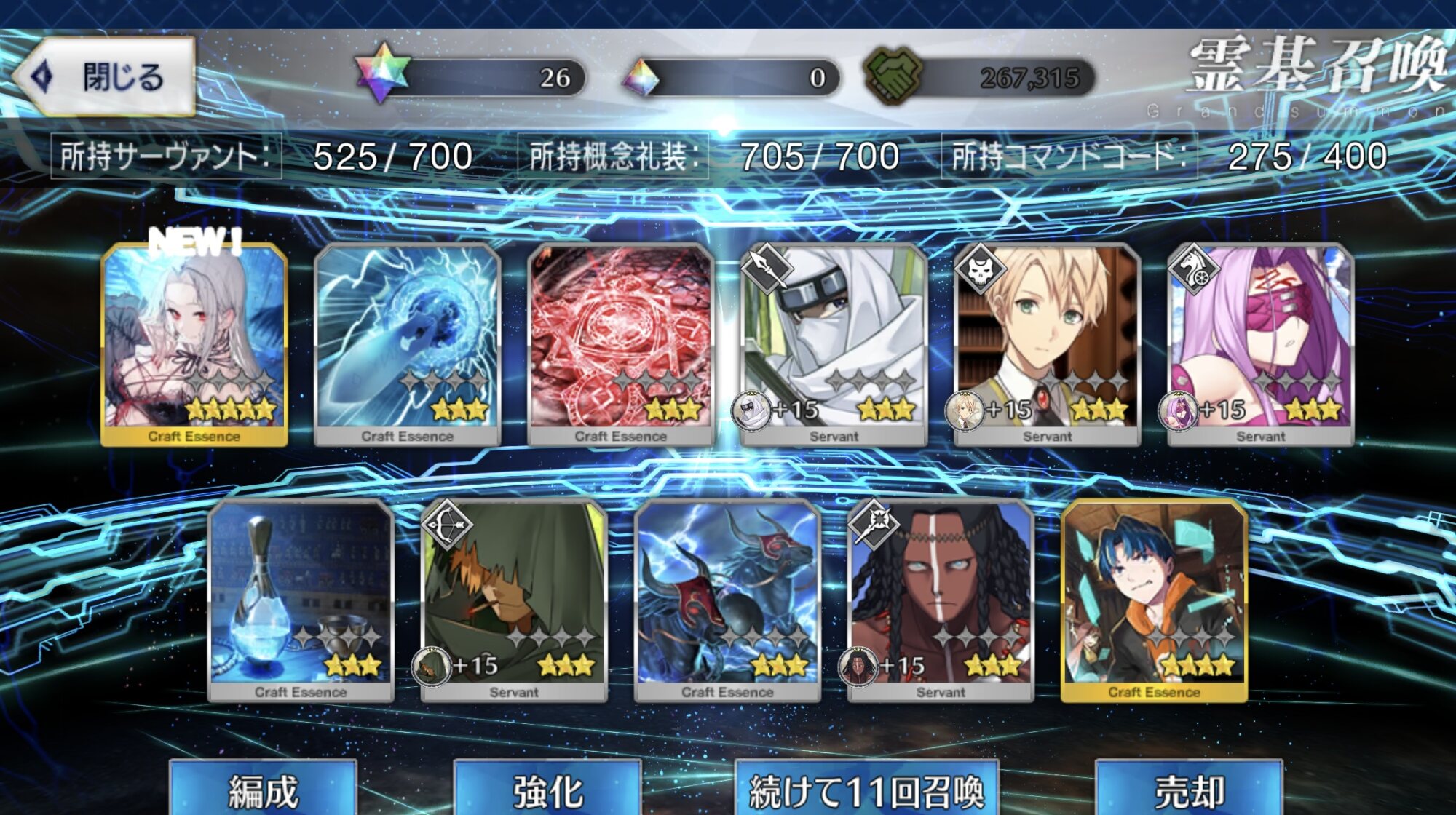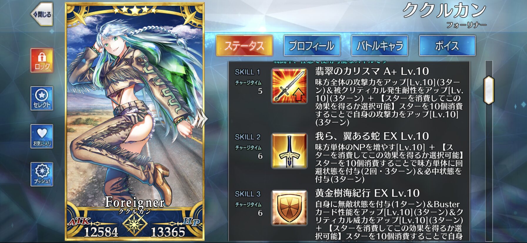NP100と宝具強化とスター50獲得と毎ターンスター獲得と必中と無敵とクリティカル威力アップが足りないなぁ