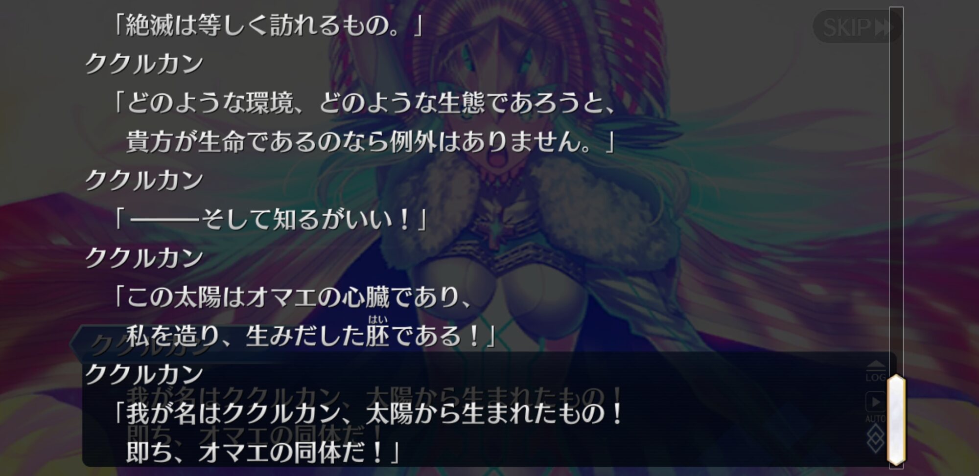 メインシナリオでもORTの最終ゲージで「ORTに食われた鯖もトリスメギストスがエミュレートして復活させる」とかやってたもんね。ククルカンはアーキタイプ:アースと違って精霊ではないということでいいですか?