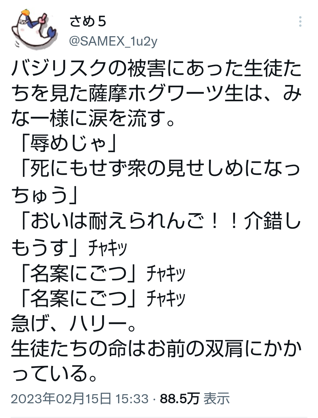 過去の所業もあるが悪い、やっぱ辛えわ。薩摩ホグワーツ生に対する穢れた血発言は一族全体に対する侮辱を意味する
