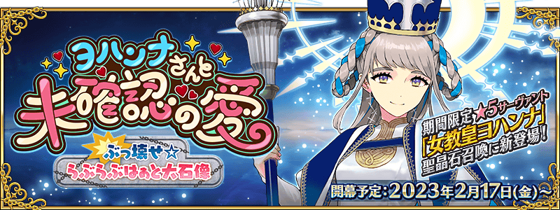 2023年バレンタインイベント「ヨハンナさんと未確認の愛 ぶっ壊せ☆らぶらぶはぁと大石像」の専用スレッドです。