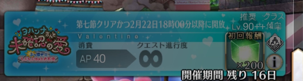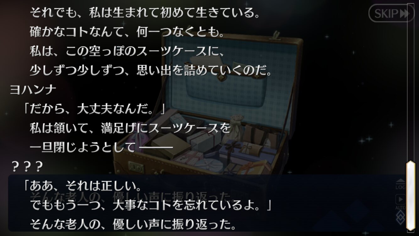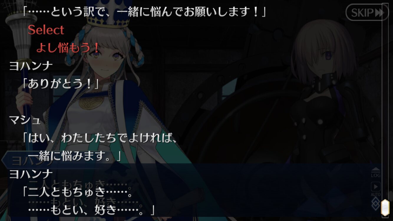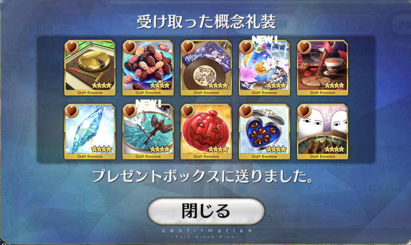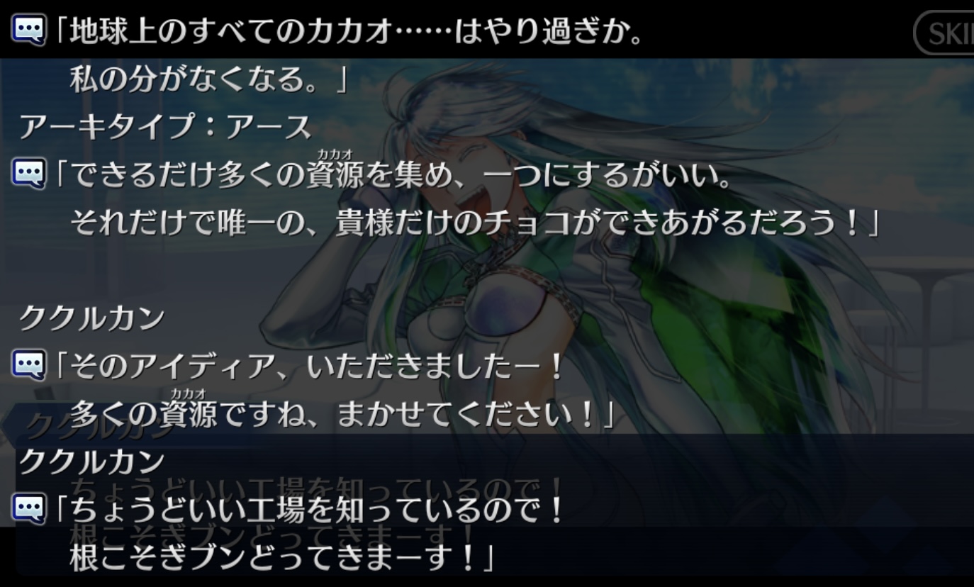 ジャンヌ・ランサーかセイバーで実装の方が良かったんじゃあ(そのあたりを考えると)あんまチョコシナリオ読む時間ないから、ガチャの演出スキップみたいに「まとめて受け取ってタスクキルしたら全部受け取ってた」とかなってたらいいけど、できるかな?