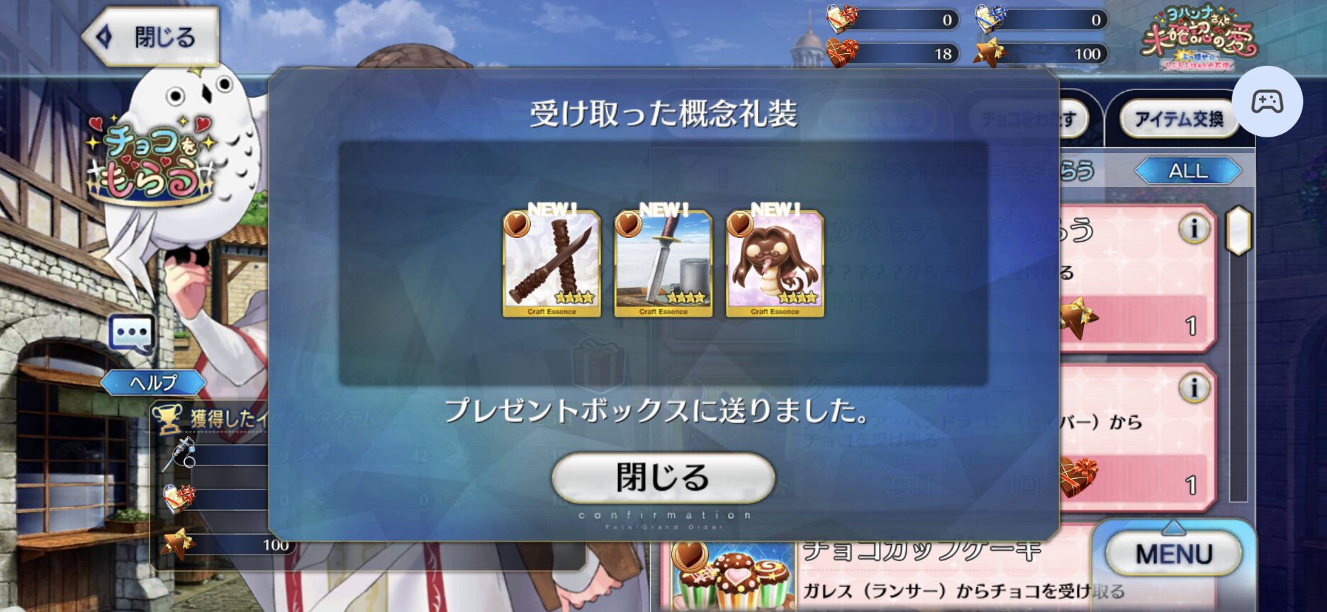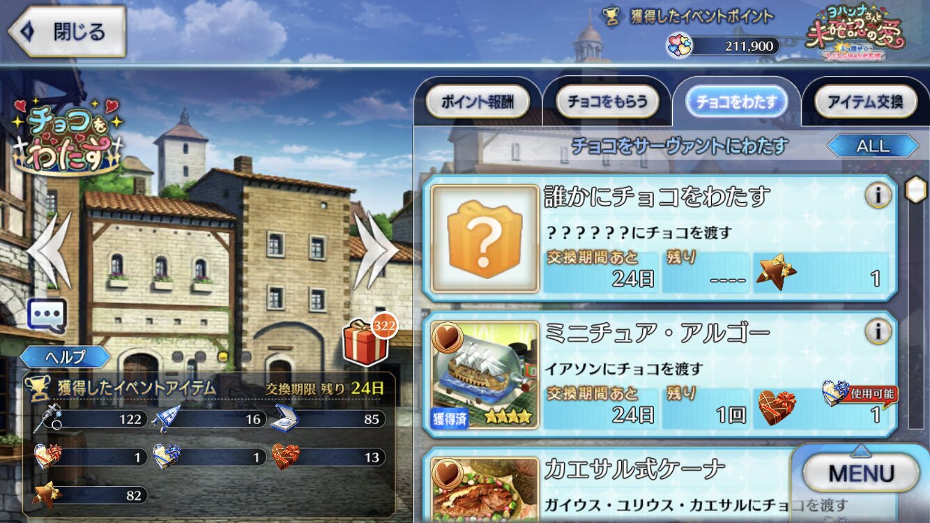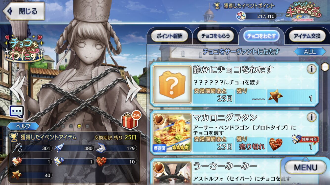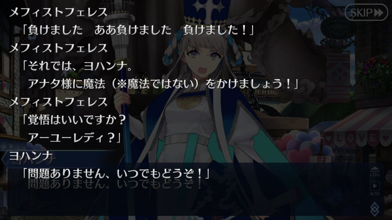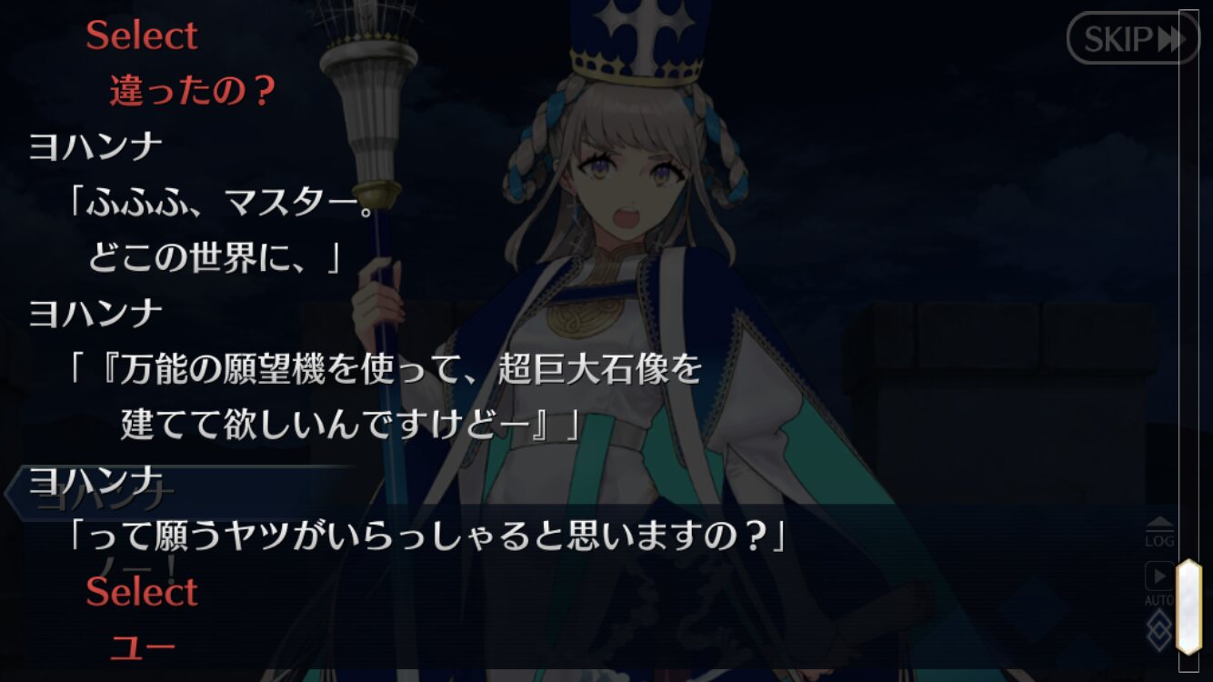 ジャンヌ・ランサーかセイバーで実装の方が良かったんじゃあ(そのあたりを考えると)あんまチョコシナリオ読む時間ないから、ガチャの演出スキップみたいに「まとめて受け取ってタスクキルしたら全部受け取ってた」とかなってたらいいけど、できるかな?