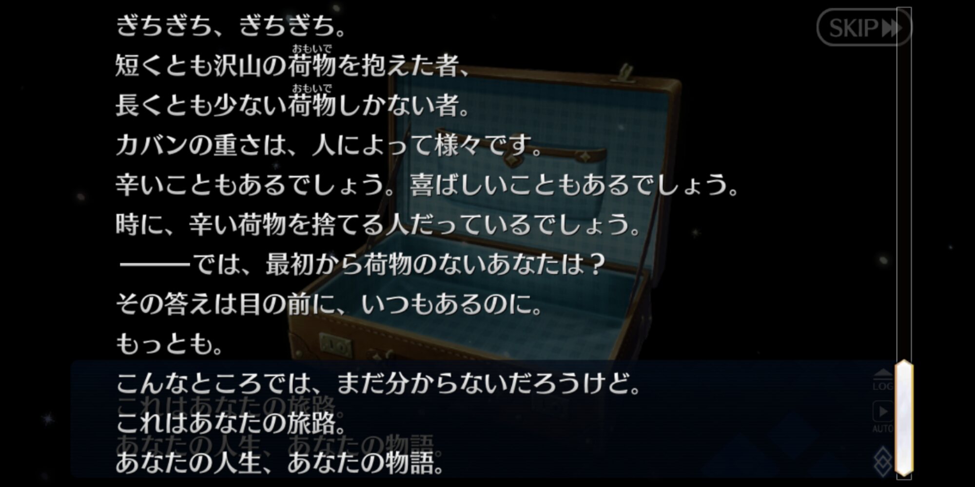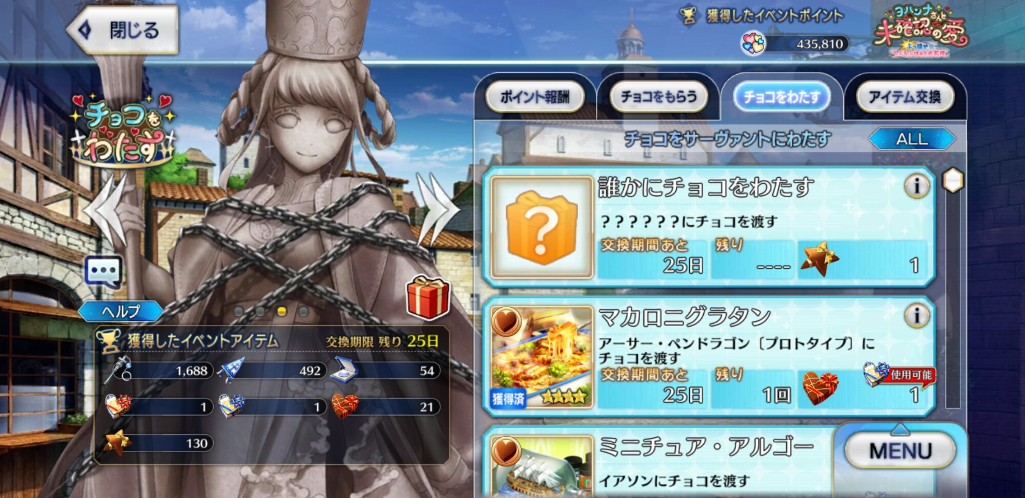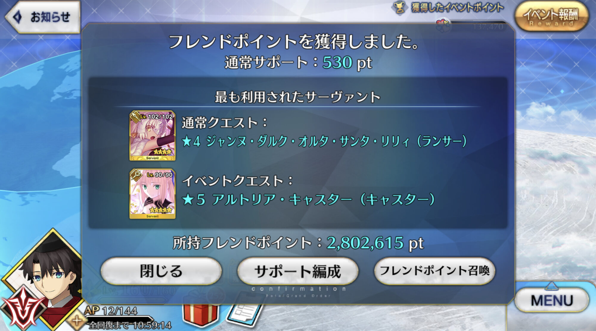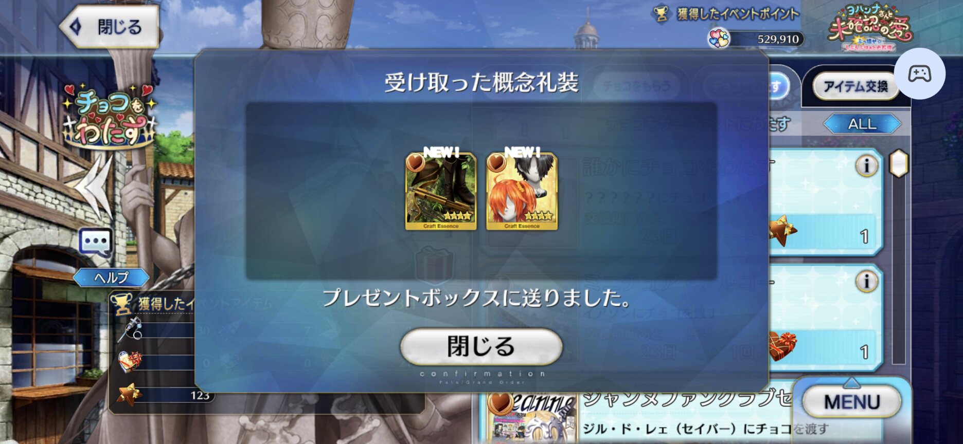 ジャンヌ・ランサーかセイバーで実装の方が良かったんじゃあ(そのあたりを考えると)あんまチョコシナリオ読む時間ないから、ガチャの演出スキップみたいに「まとめて受け取ってタスクキルしたら全部受け取ってた」とかなってたらいいけど、できるかな?