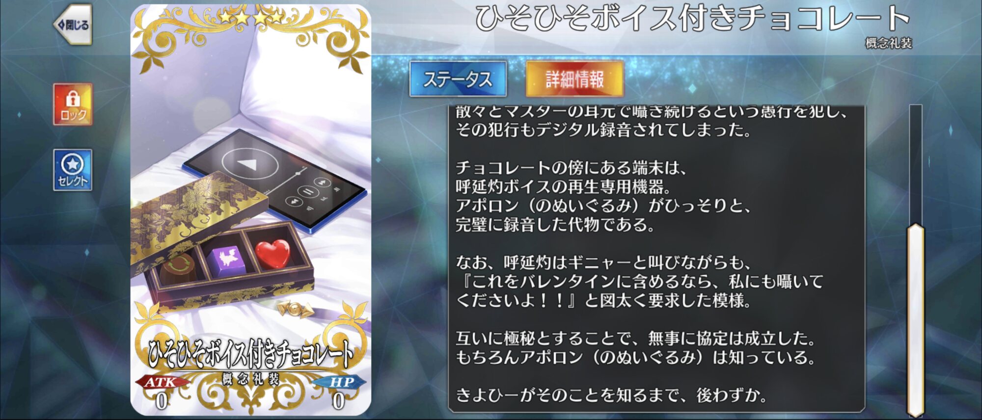 シナリオによっては喋らないまま出番終わる本当にチョイ役のこともあるけど、喋ると面白い役どころになってる場合が多いので本当に助かる…陛下のチョコ、今年初めて頂いたけど凄く優しいお話だね