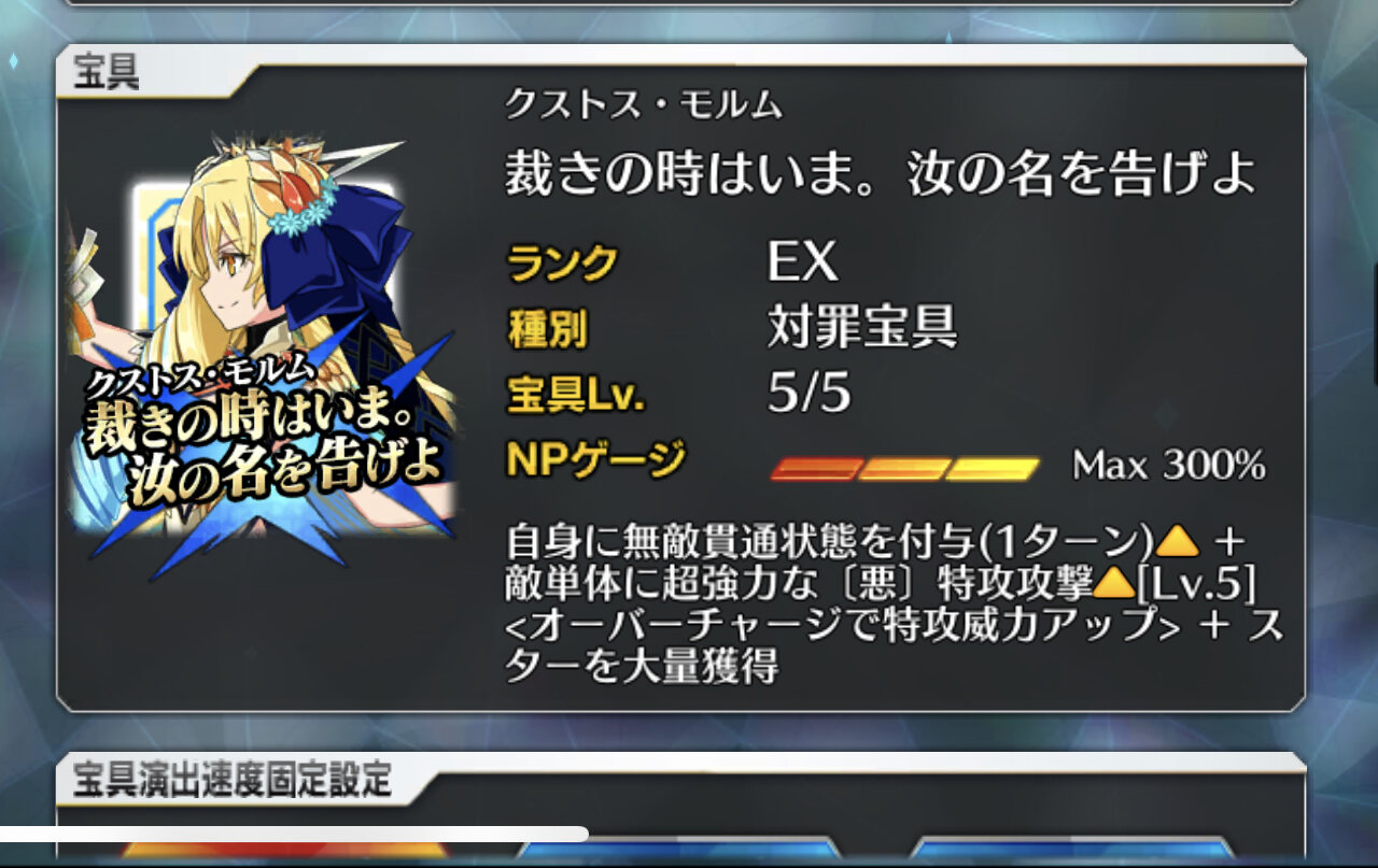 これを見てそういえば星5の宝具上げは普通しないものだったな・・・と思い出す