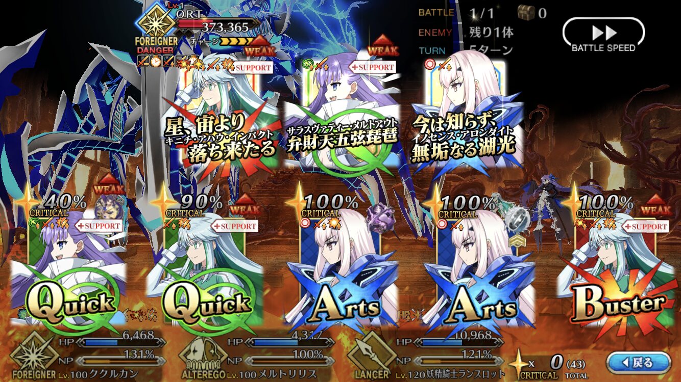 回想のステージだから優し目なんだろうなと挑んだら想像以上に手こずったのだわ…ククルんはいざとなればNP50を他人に渡せるからなぁ