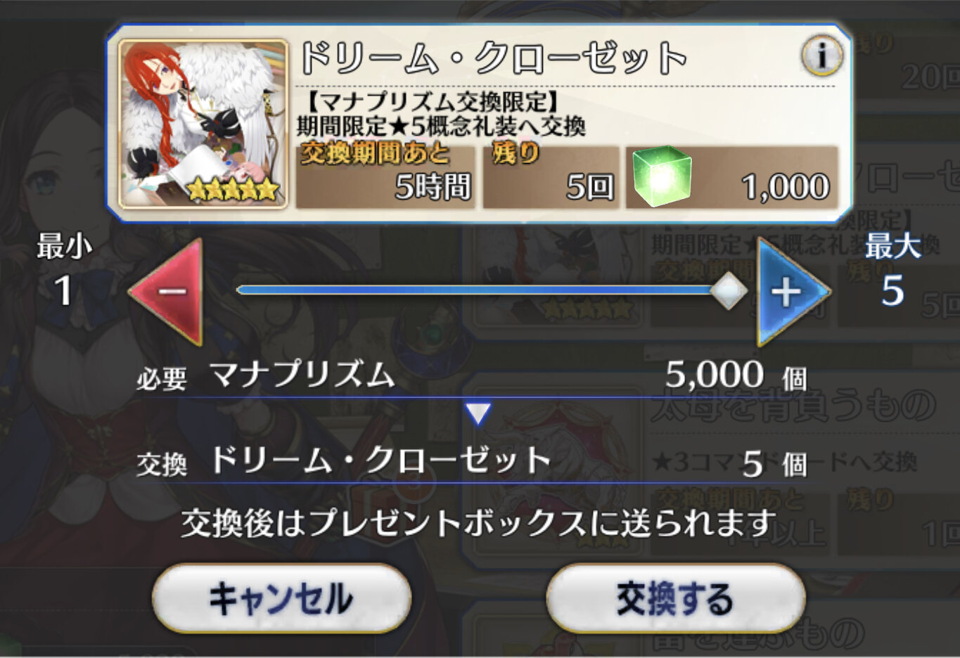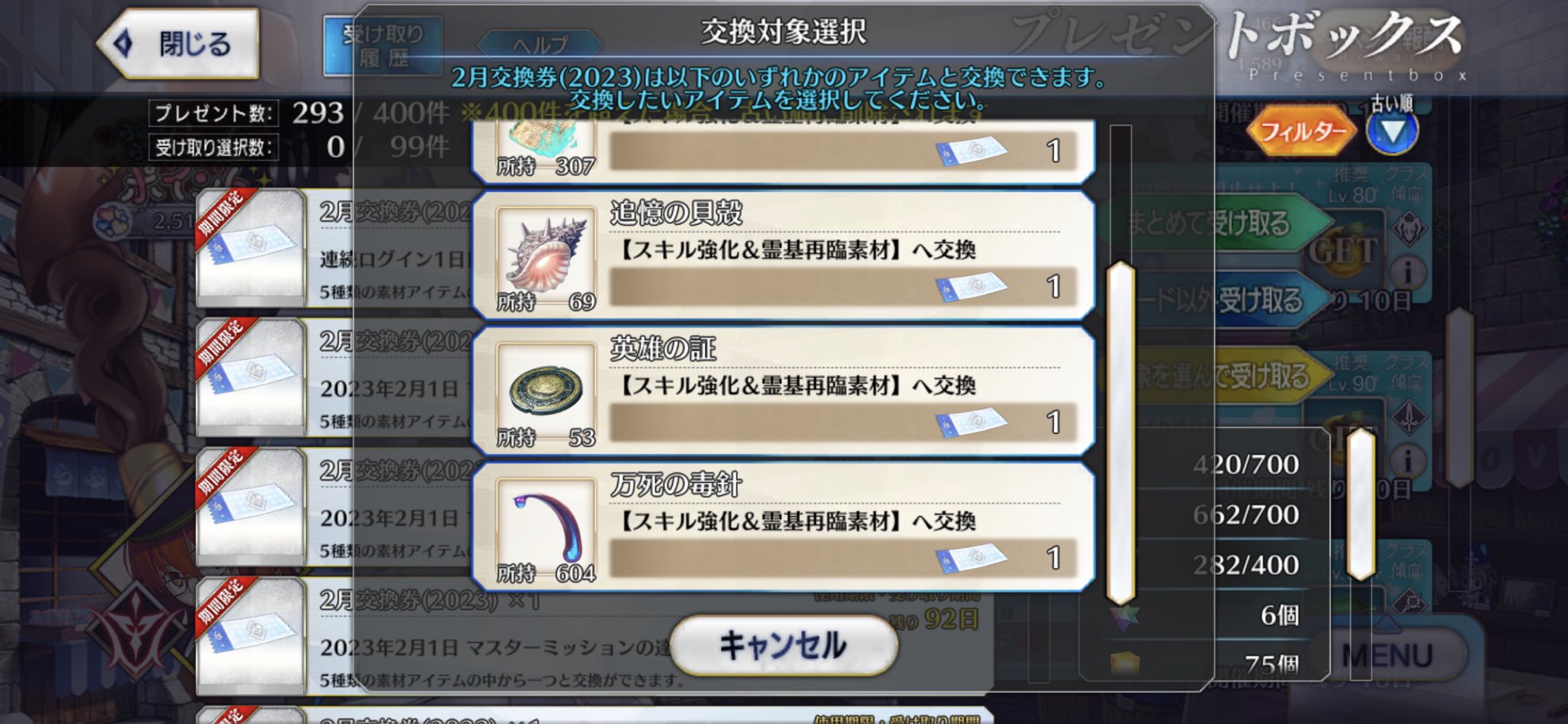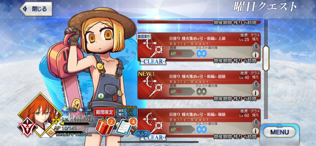 まだ日にちはあるわけだからもうしばらく置いておいて使いそうな方を交換するとか?そういえばマナプリ礼装も今日までだから、明日には新しいの来るかな?