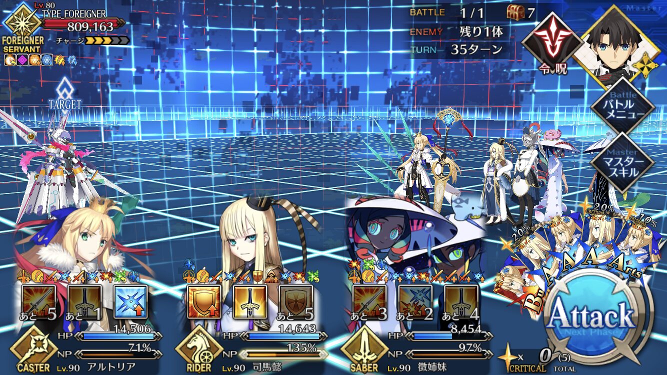 全体宝具ぶっぱを連発できるキャラ+単体ルーラーを最後尾に置いておくのが正解?>>859