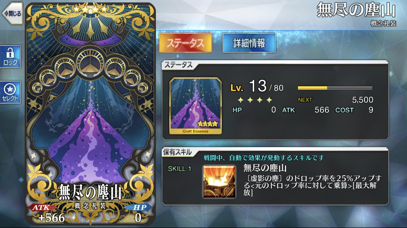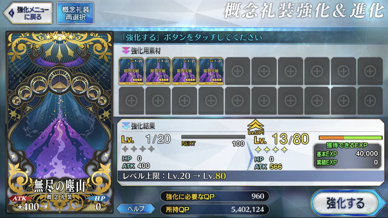 一人にだけ装備させればよくなる分、他の絆アップ礼装とか詰めるから得よね。わーお、ついにドロップ礼装が凸出来るようになったので?