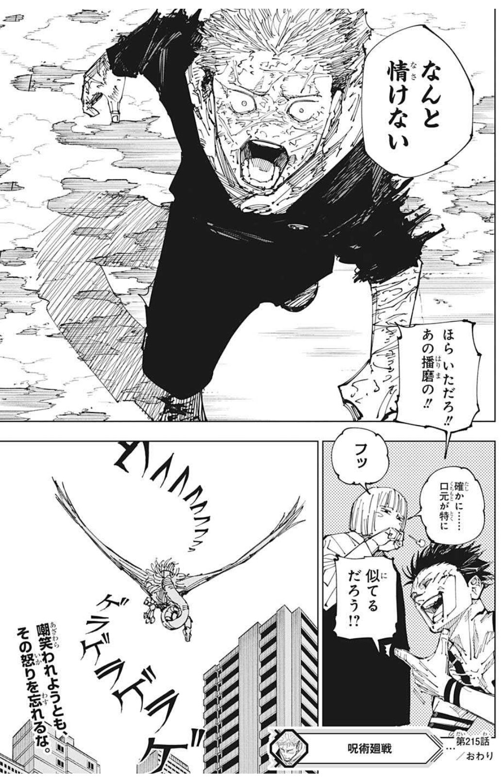 あと来栖ももがれて、堕とされてグチャッ!てされてたな……。虎杖はこれからどうなるにせよ自分のルーツに触れる感じ?宿儺は逃げたし真希さんとは合流したけど。