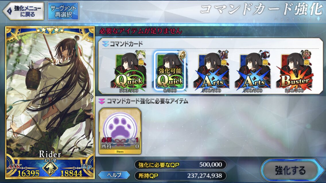 ショップでほぼ毎回交換してる俺が2騎ぶん+45個だからまぁ3騎分は揃わないね…星5フォウくん+1000以上のHPとATKを+25