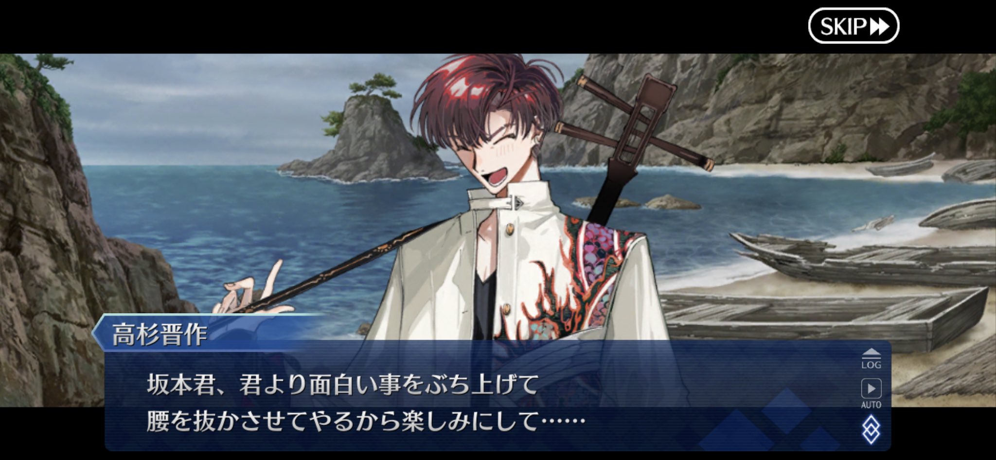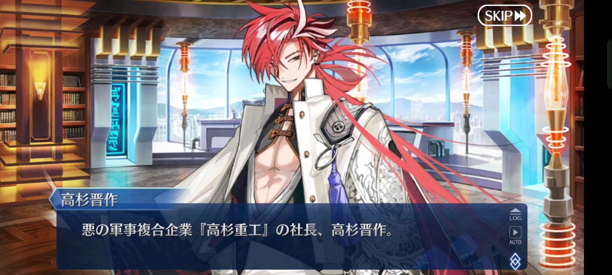 「高杉晋作」は「昭和キ神計画 ぐだぐだ龍馬危機一髪! 消えたノッブヘッドの謎」で登場したサーヴァント。本来の歴史とは異なる「流血開城」が行われた結果、文明が発達した維新都市「SAITAMA」。そこで都市の中心となる「高杉重工」の社長をしていました。色々あった結果、阿国さんも高杉重工の下である事件の調査を行っていました。