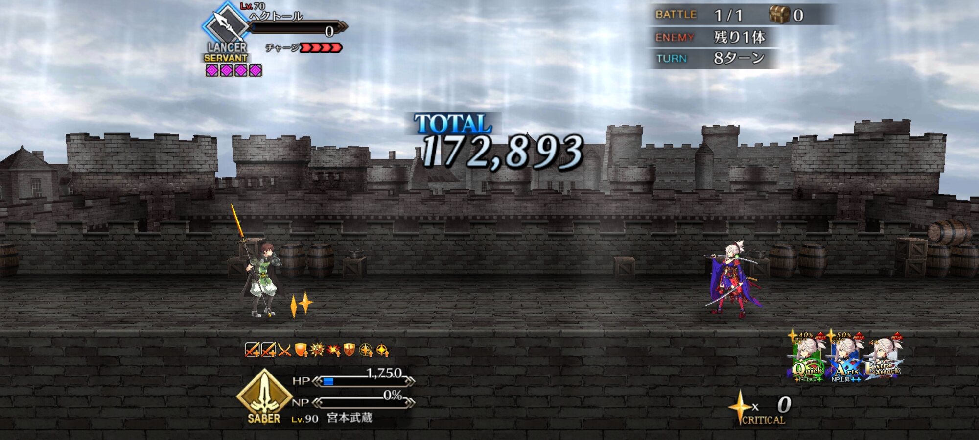 各員の宝具が決まれば勝ち筋はありそうでしたが届かず。次ターンでバフマシマシロンゴミニアドが撃てそうだったのに集中砲火したあの鳥野郎を許すわけにはいかない>>75