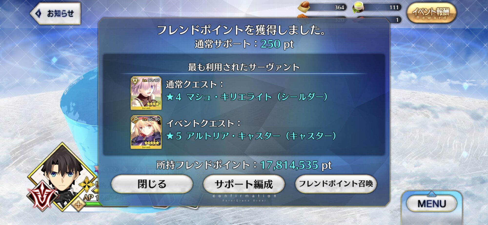 今度こそ…盾乙。聖杯は推しに限らず、星4の底上げに割と手広く使ってるなぁ