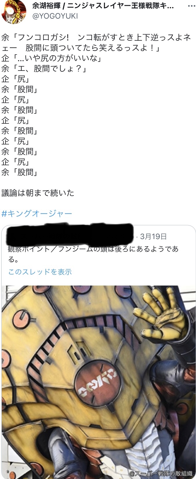 最悪ゴセイジャーの10サイのロボゴーグみたいに「国という体はしてるけど国民は実質自分一人で後は自分が作った人工物」じゃねぇかなバグナラク>>83