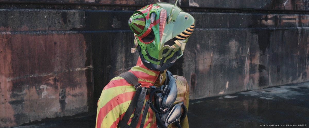 あの一跳びで物凄く高く跳び上がりながら攻防を行いつつ着地し、再び跳び上がって攻防を繰り返すシーン、シン・仮面ライダーの中では少ない『明るい場所での戦闘シーン』だから、見やすかったのもある気はするけど。当たり前のようにネタバレワード出してきて草枯れる