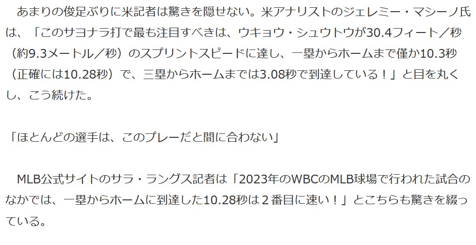 ちなみに大谷もメジャートップクラスの走力の持ち主である - 37名無し2023/03/21(Tue) 23:49:31報告