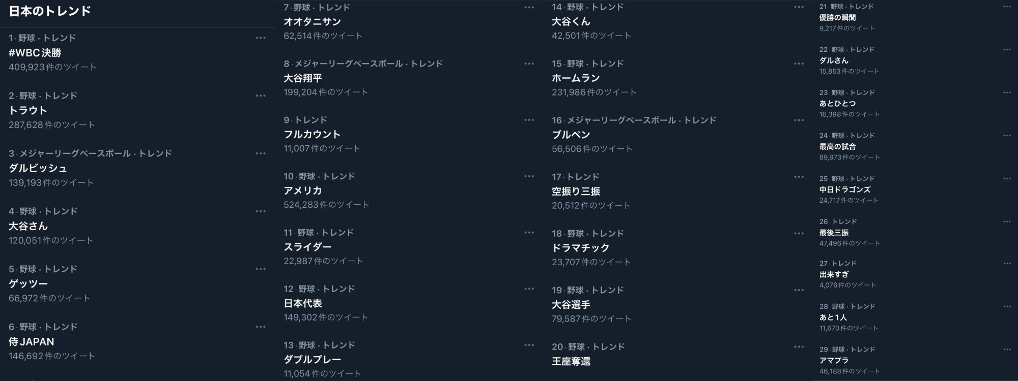 トレンドに「WBCロス」が