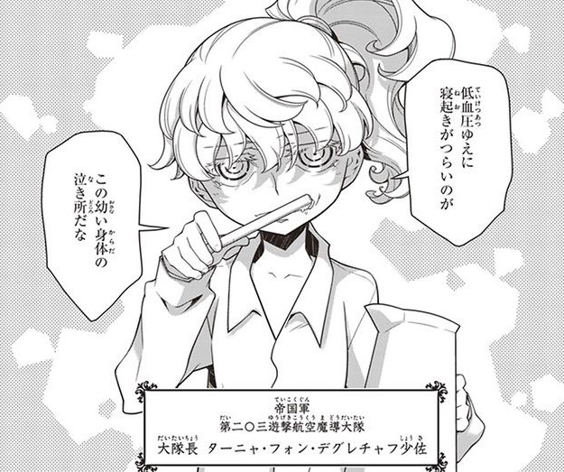 漫画版では部下の性能が盛られまくっている故にわりと上の中ぐらいなイメージに収まっているターニャちゃん>>64