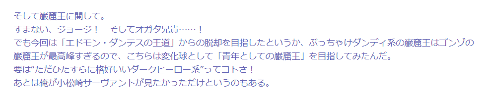 今思うとあのキャラは巌窟王と藤丸くんだったんだな…