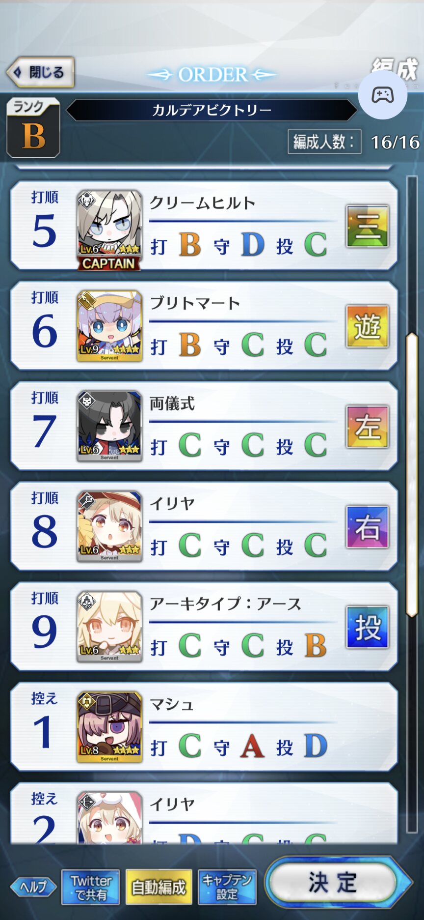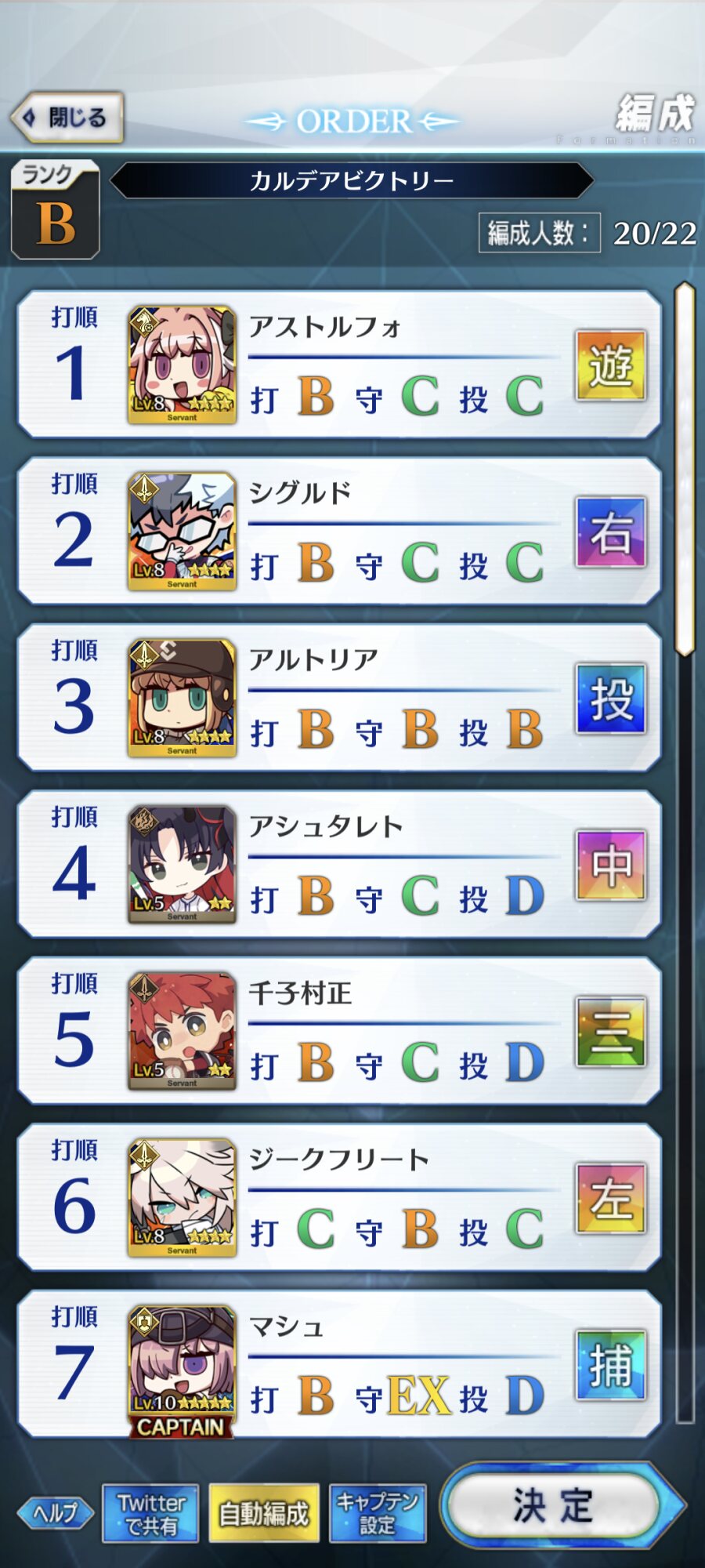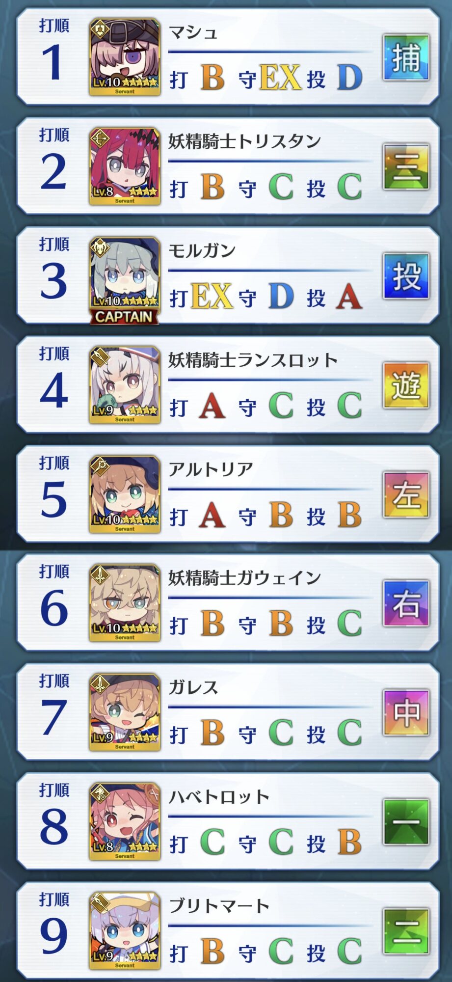 ねぇ、これってマシュはキャッチャーとピッチャー以外に置いてた方が良い系…?