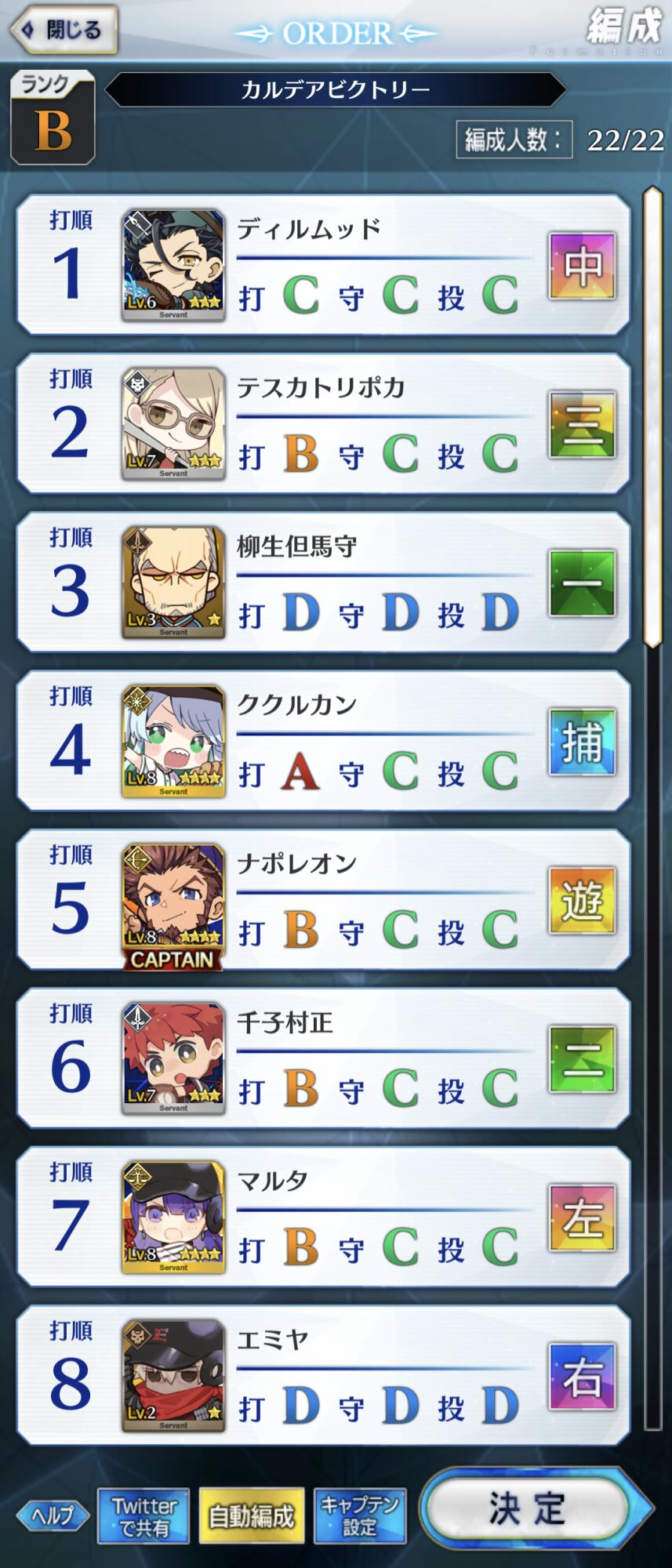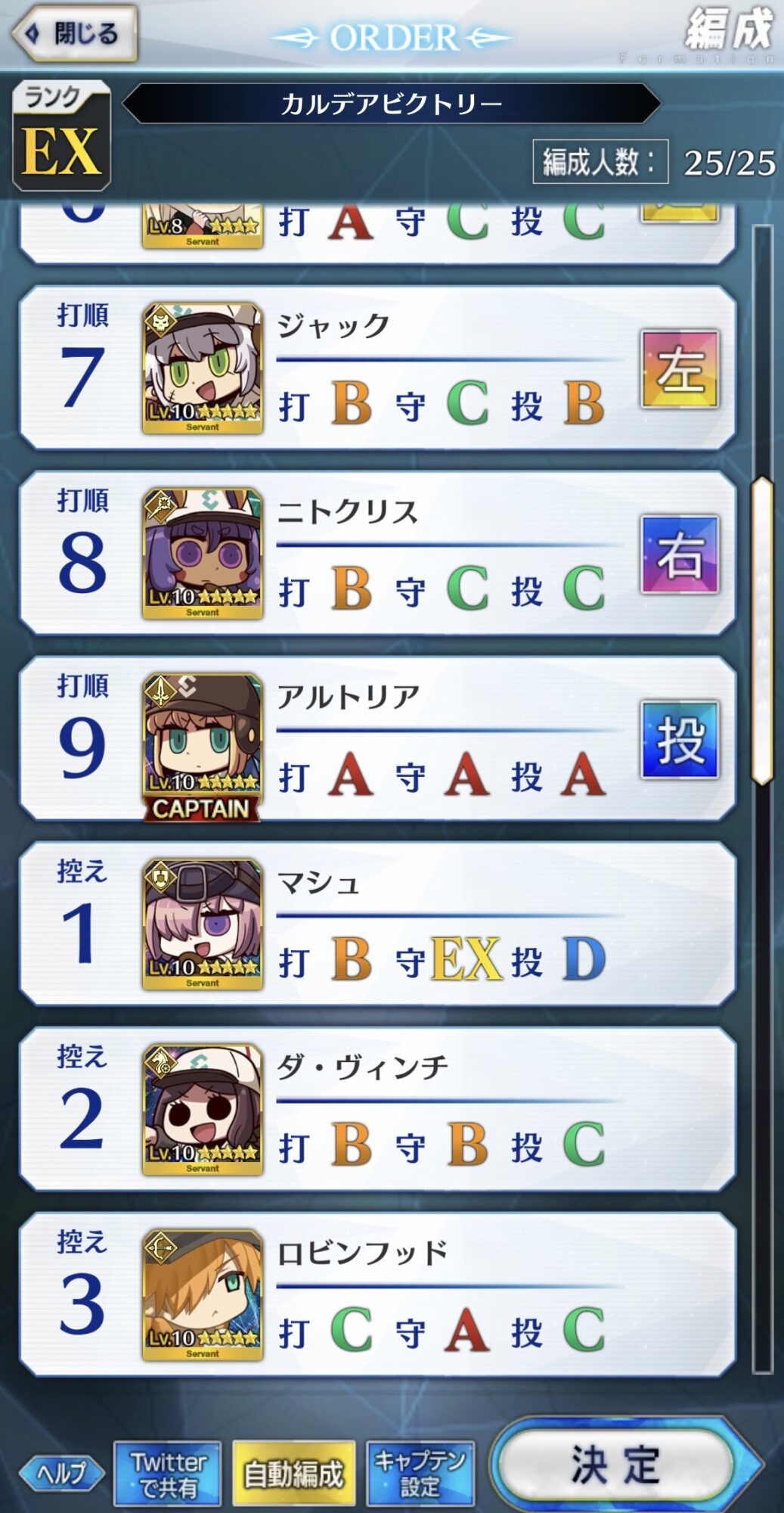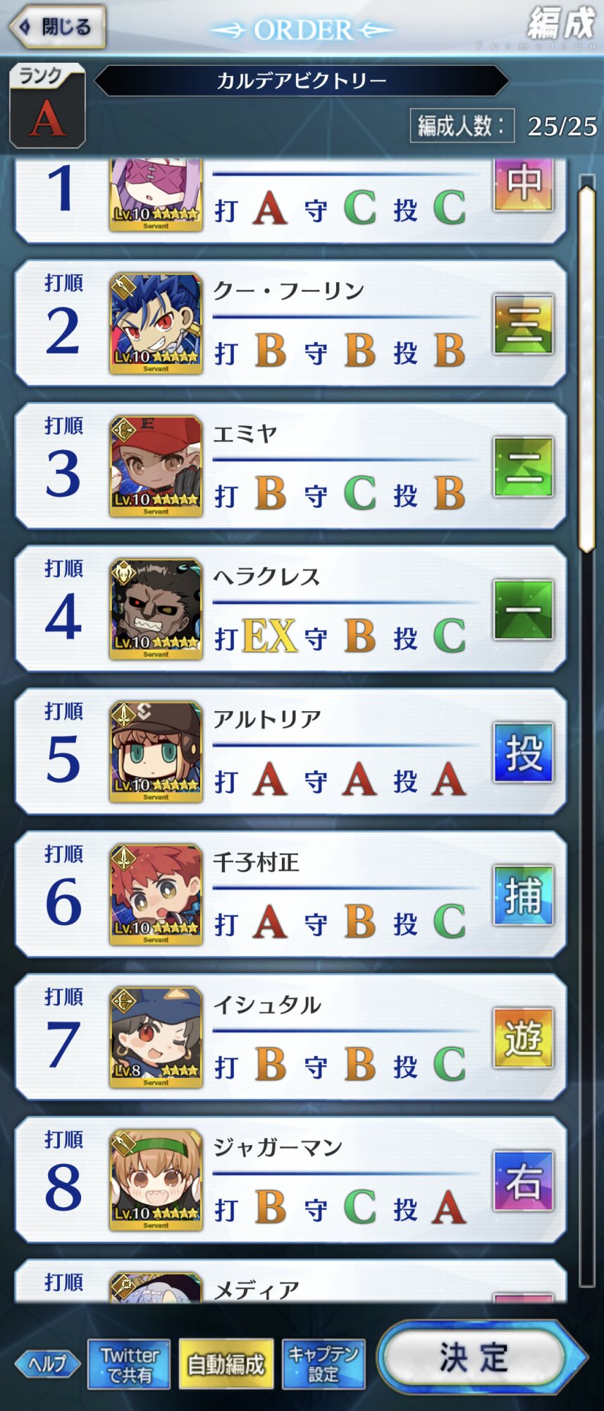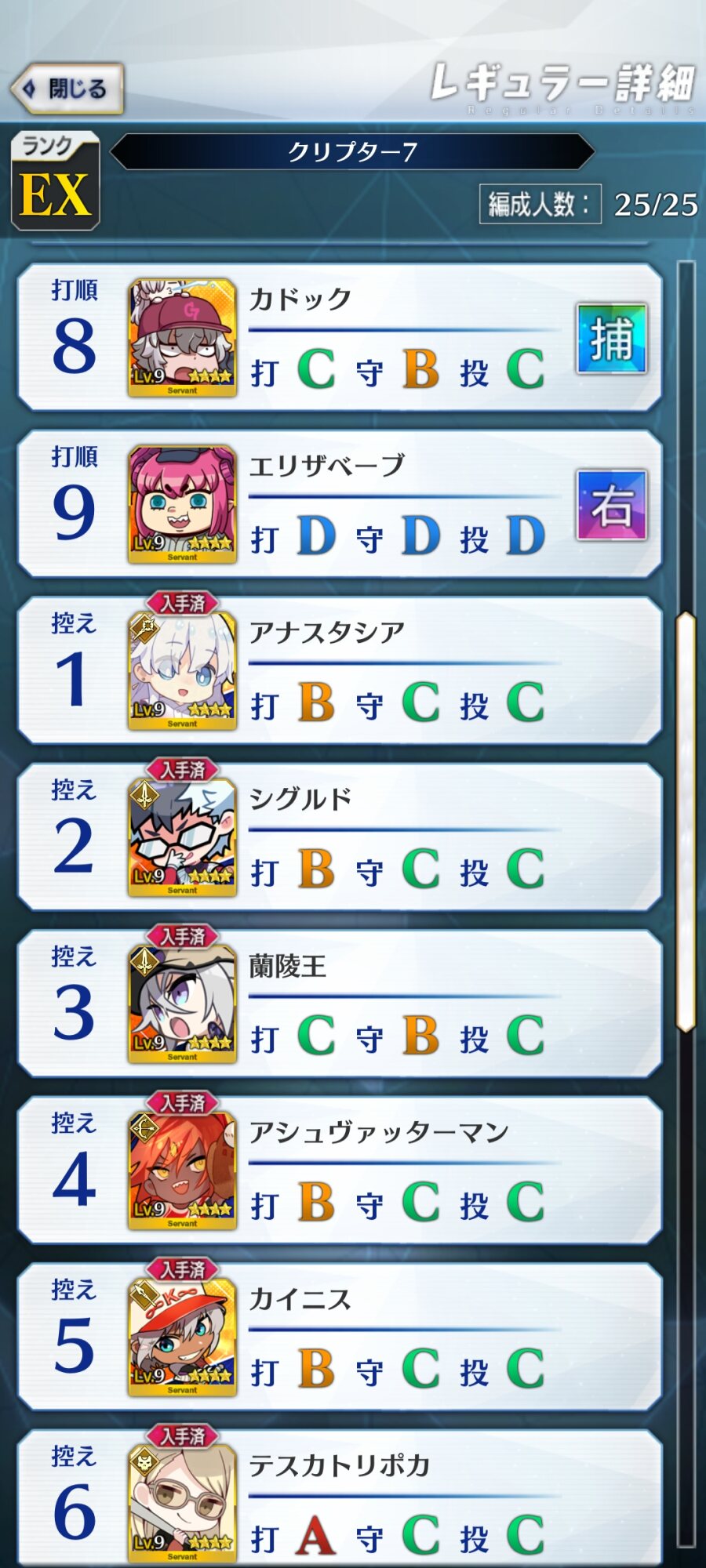 ねぇ、これってマシュはキャッチャーとピッチャー以外に置いてた方が良い系…?