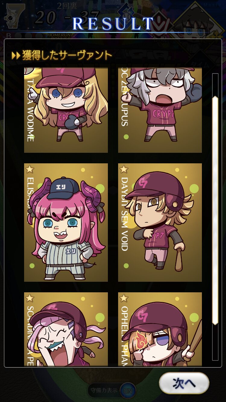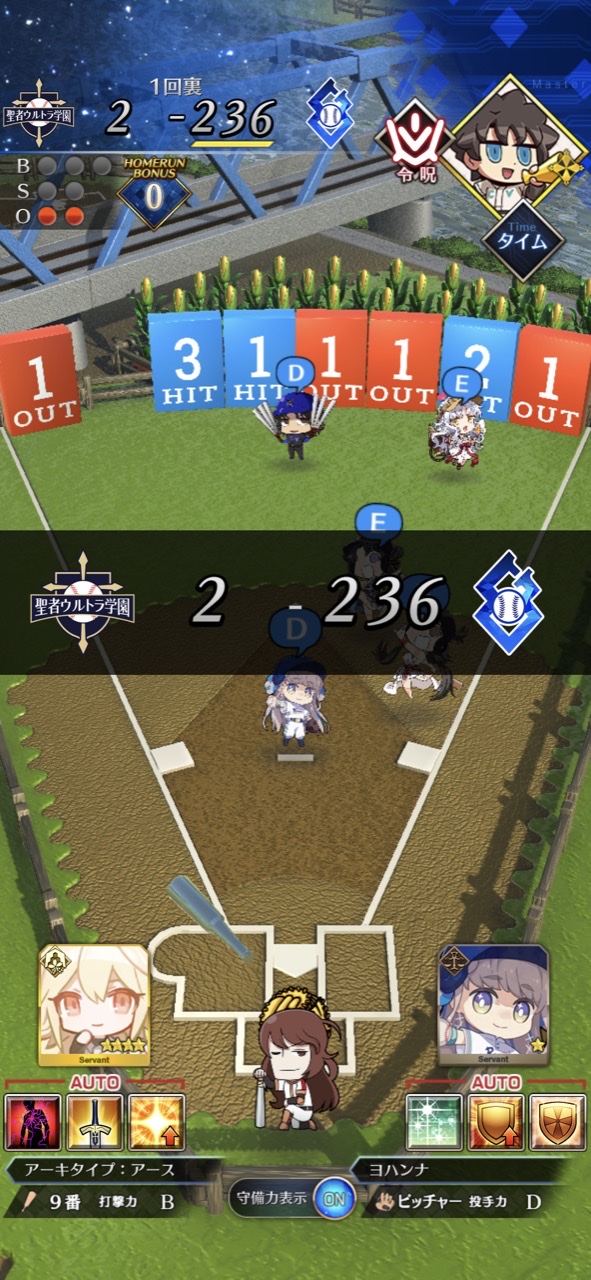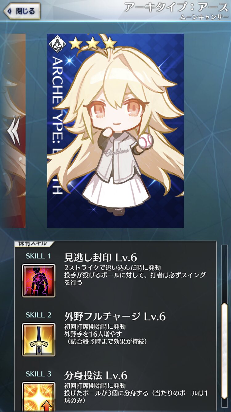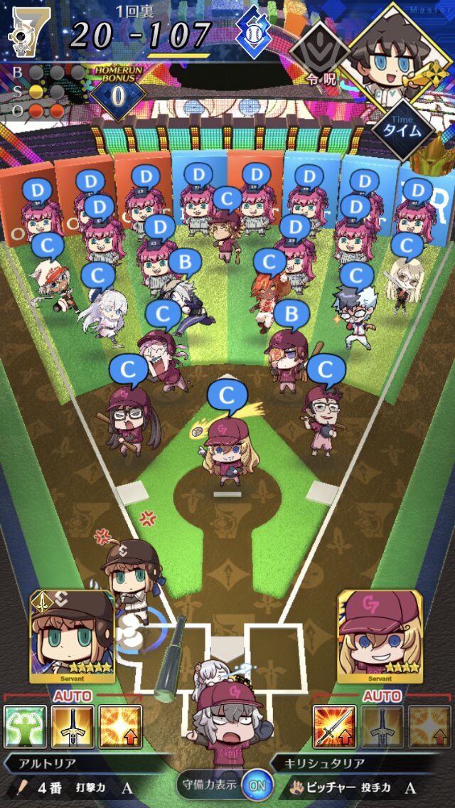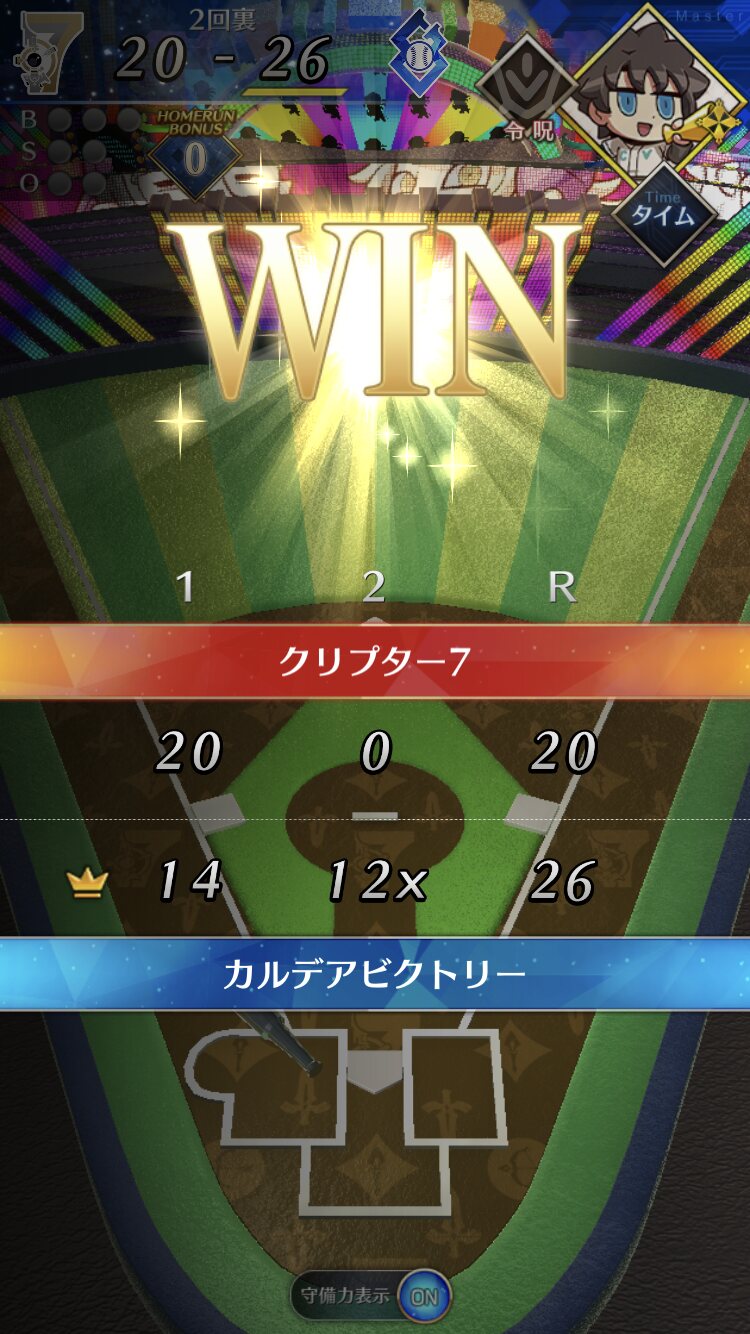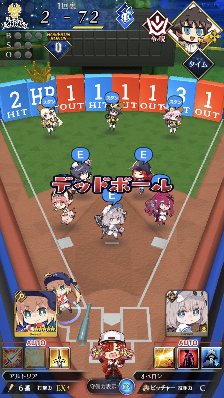 記憶が合っていれば「試合中吹っ飛ばした相手サーヴァントを獲得」やでここ数年やきう見てた影響でバッターに合わせて球種選ぶの楽しすぎるな……