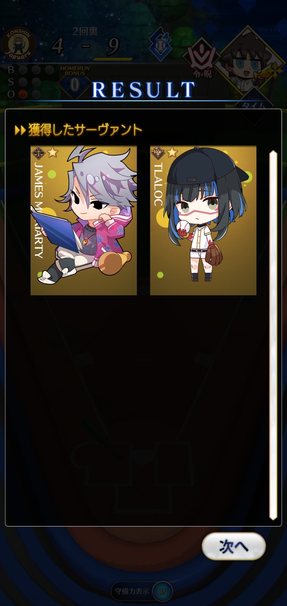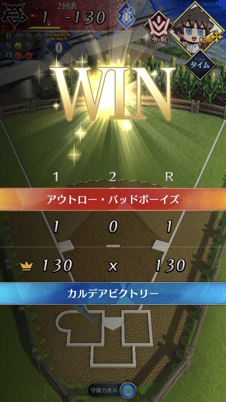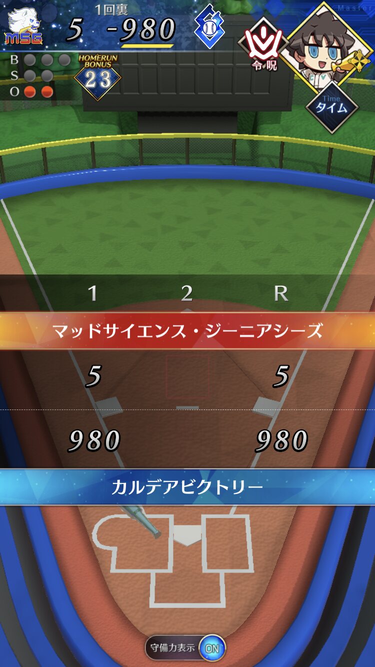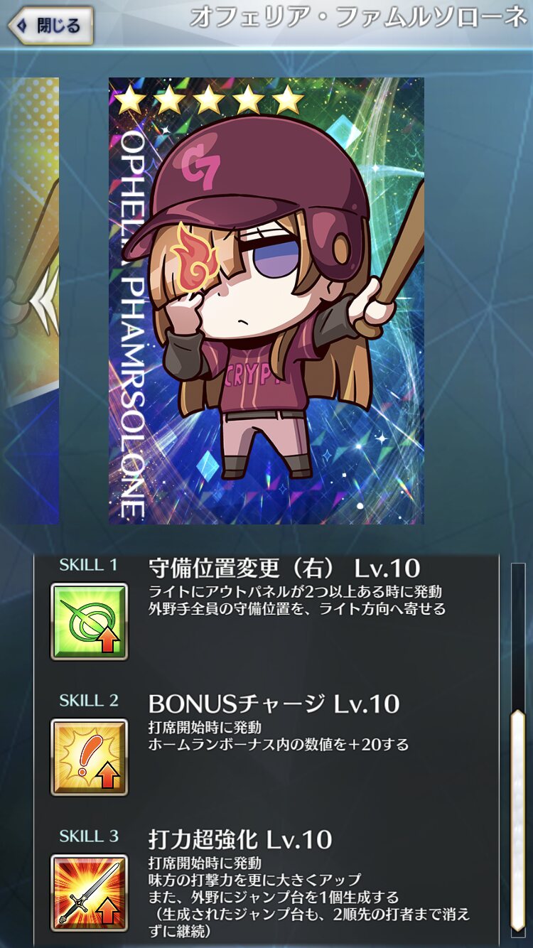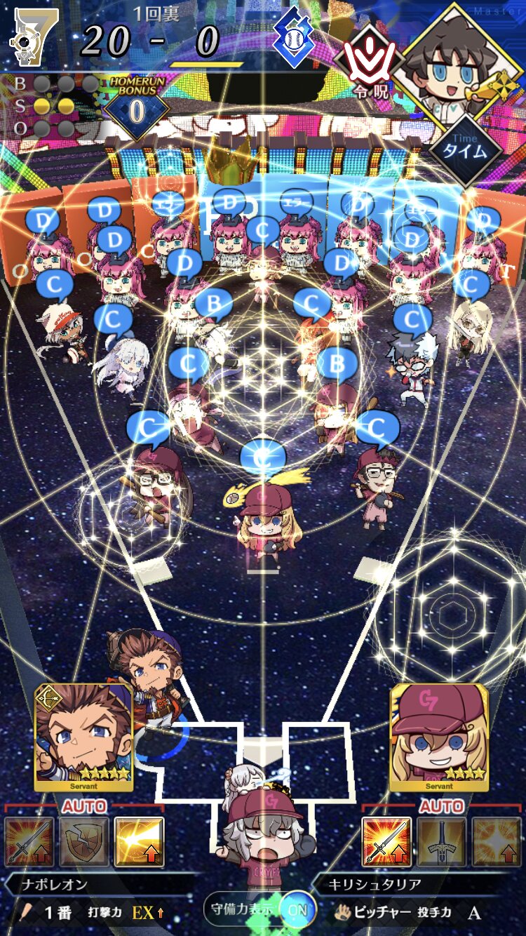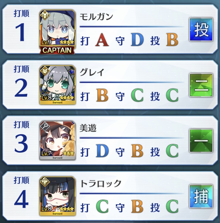 記憶が合っていれば「試合中吹っ飛ばした相手サーヴァントを獲得」やでここ数年やきう見てた影響でバッターに合わせて球種選ぶの楽しすぎるな……