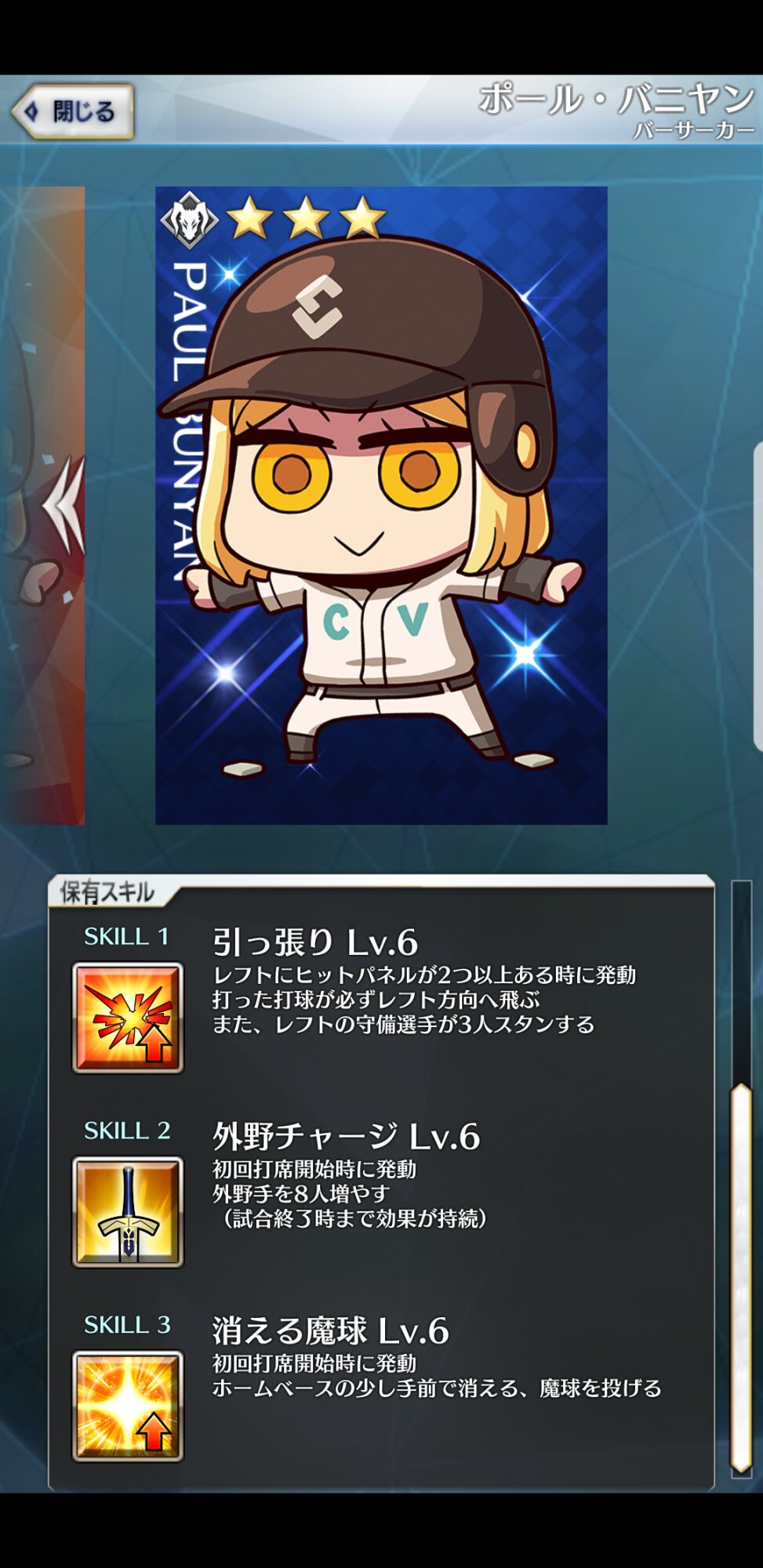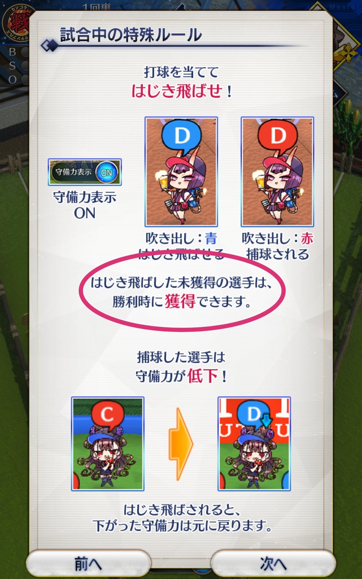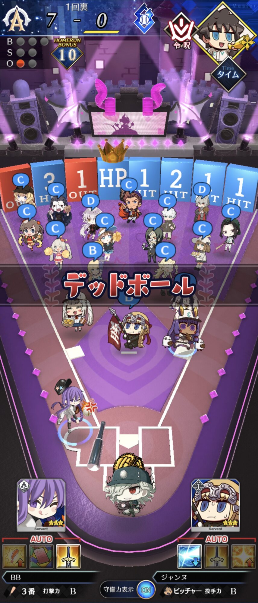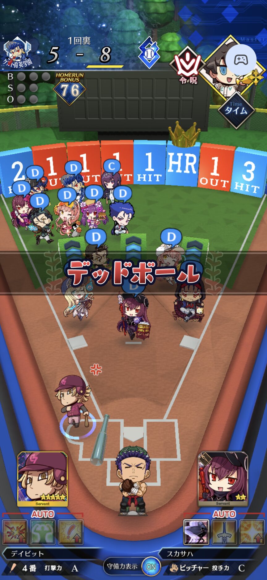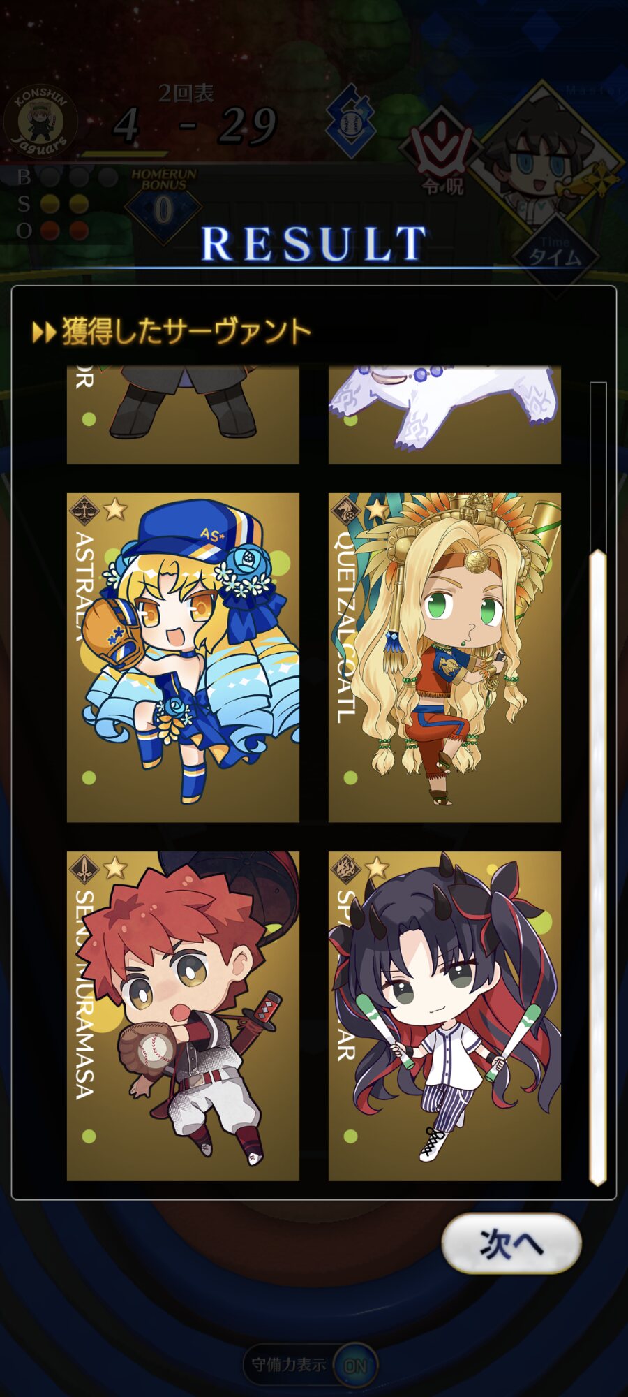 記憶が合っていれば「試合中吹っ飛ばした相手サーヴァントを獲得」やでここ数年やきう見てた影響でバッターに合わせて球種選ぶの楽しすぎるな……