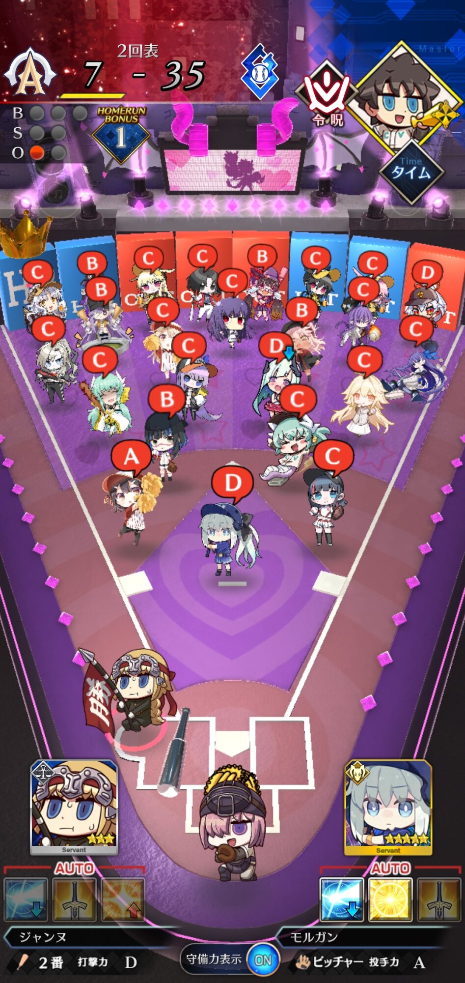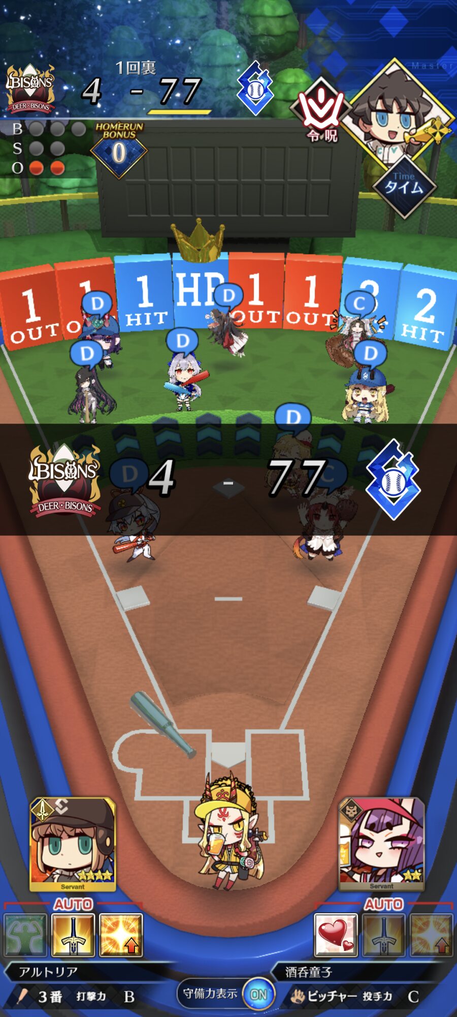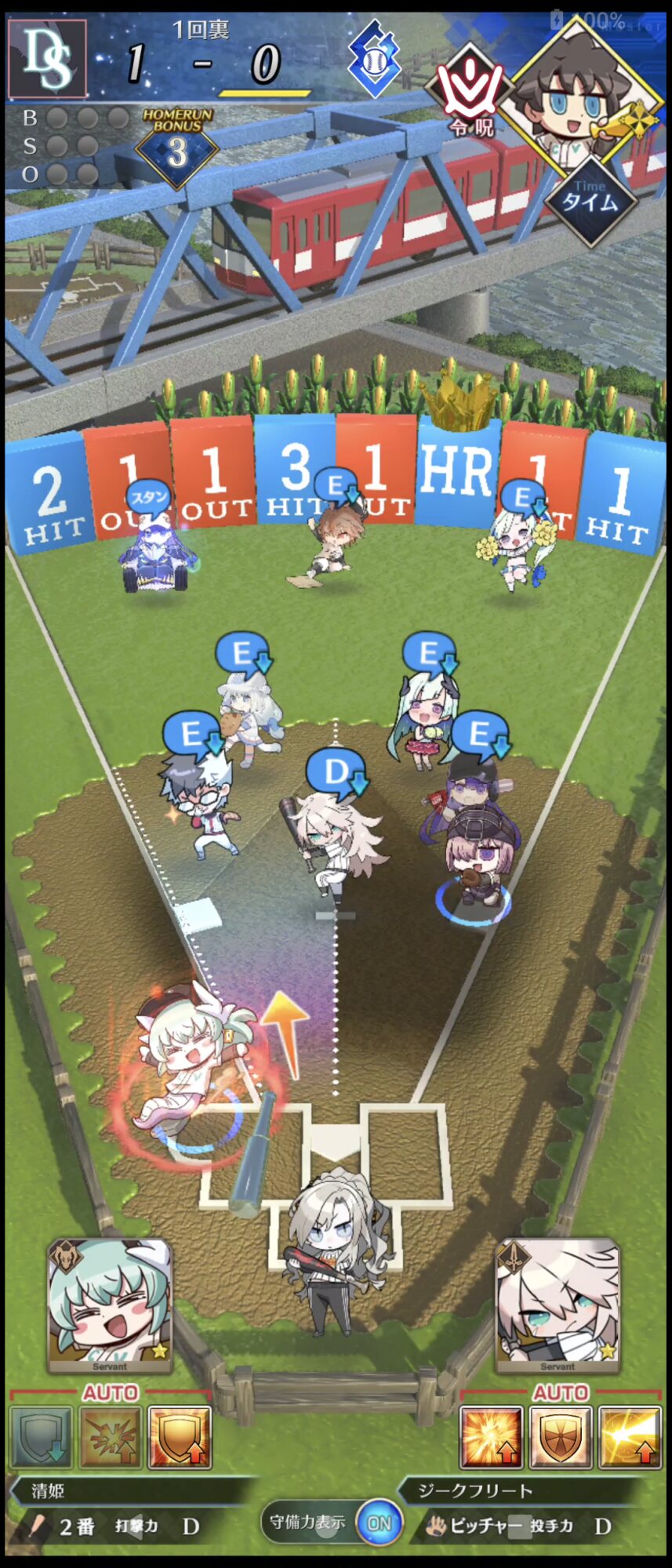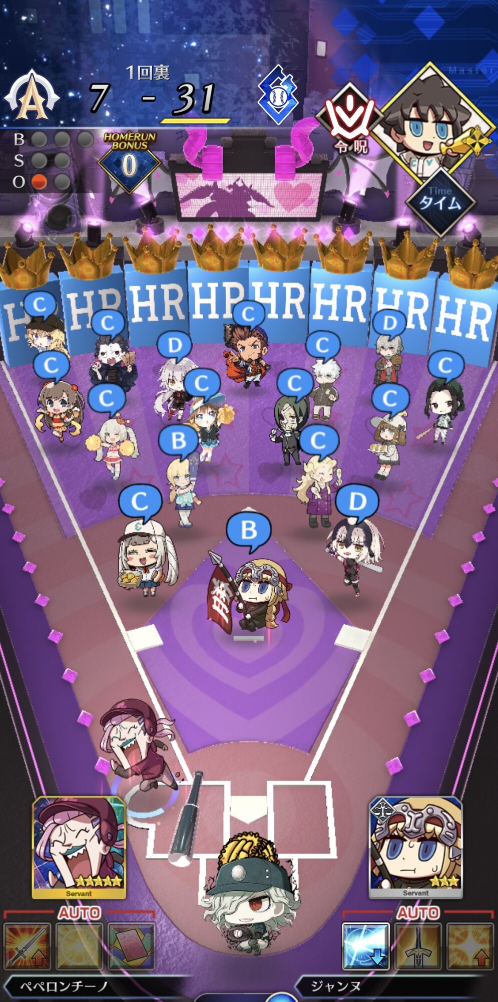 記憶が合っていれば「試合中吹っ飛ばした相手サーヴァントを獲得」やでここ数年やきう見てた影響でバッターに合わせて球種選ぶの楽しすぎるな……