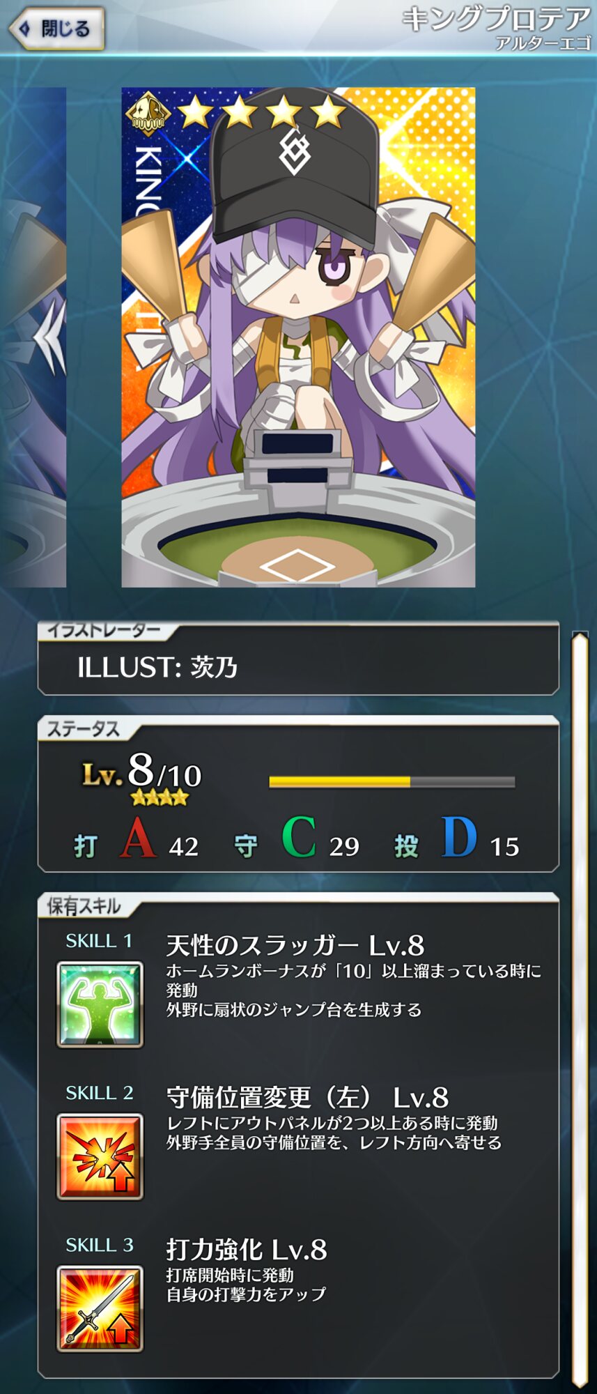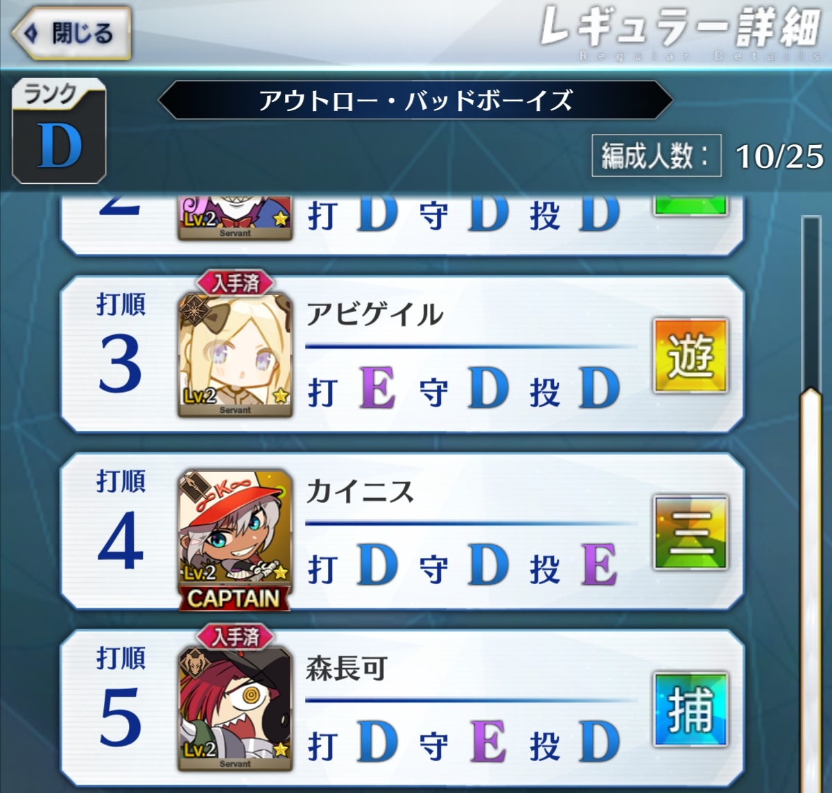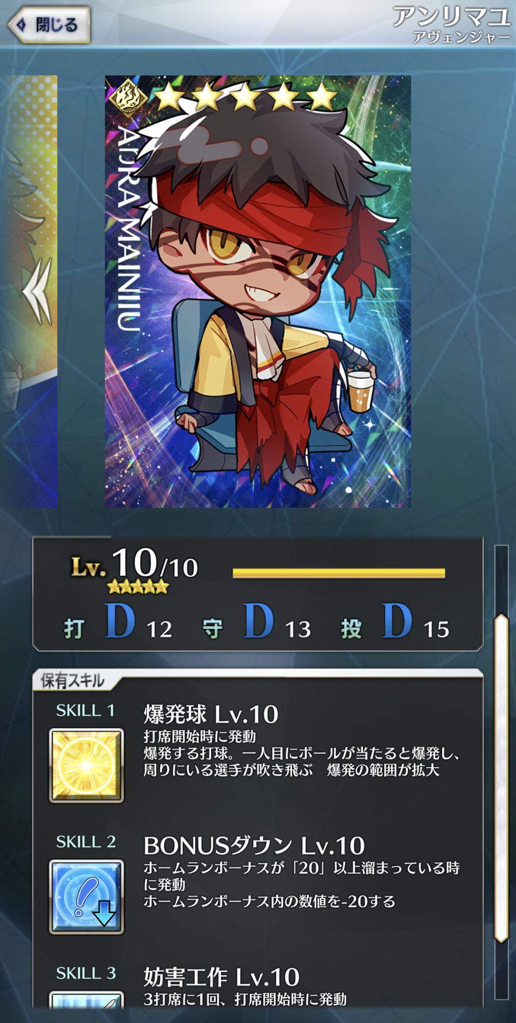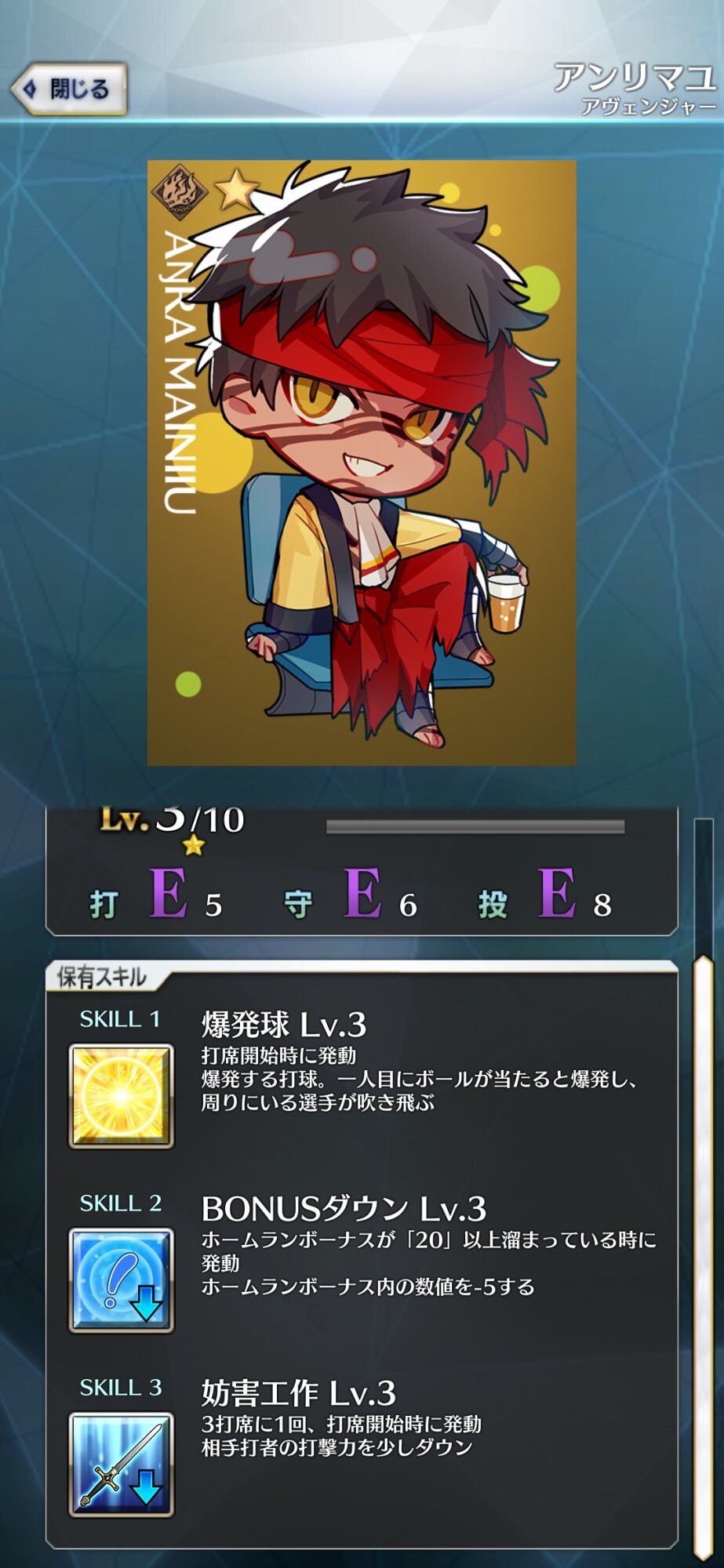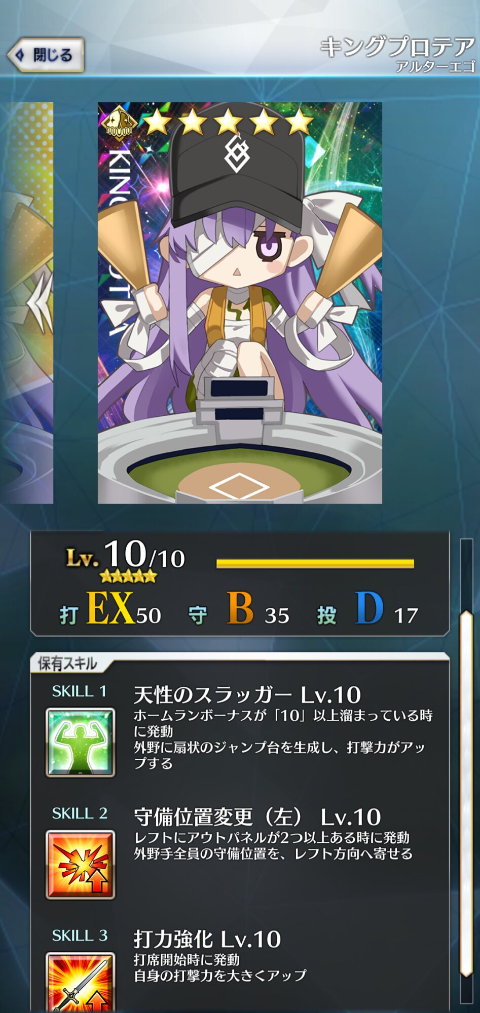 記憶が合っていれば「試合中吹っ飛ばした相手サーヴァントを獲得」やでここ数年やきう見てた影響でバッターに合わせて球種選ぶの楽しすぎるな……