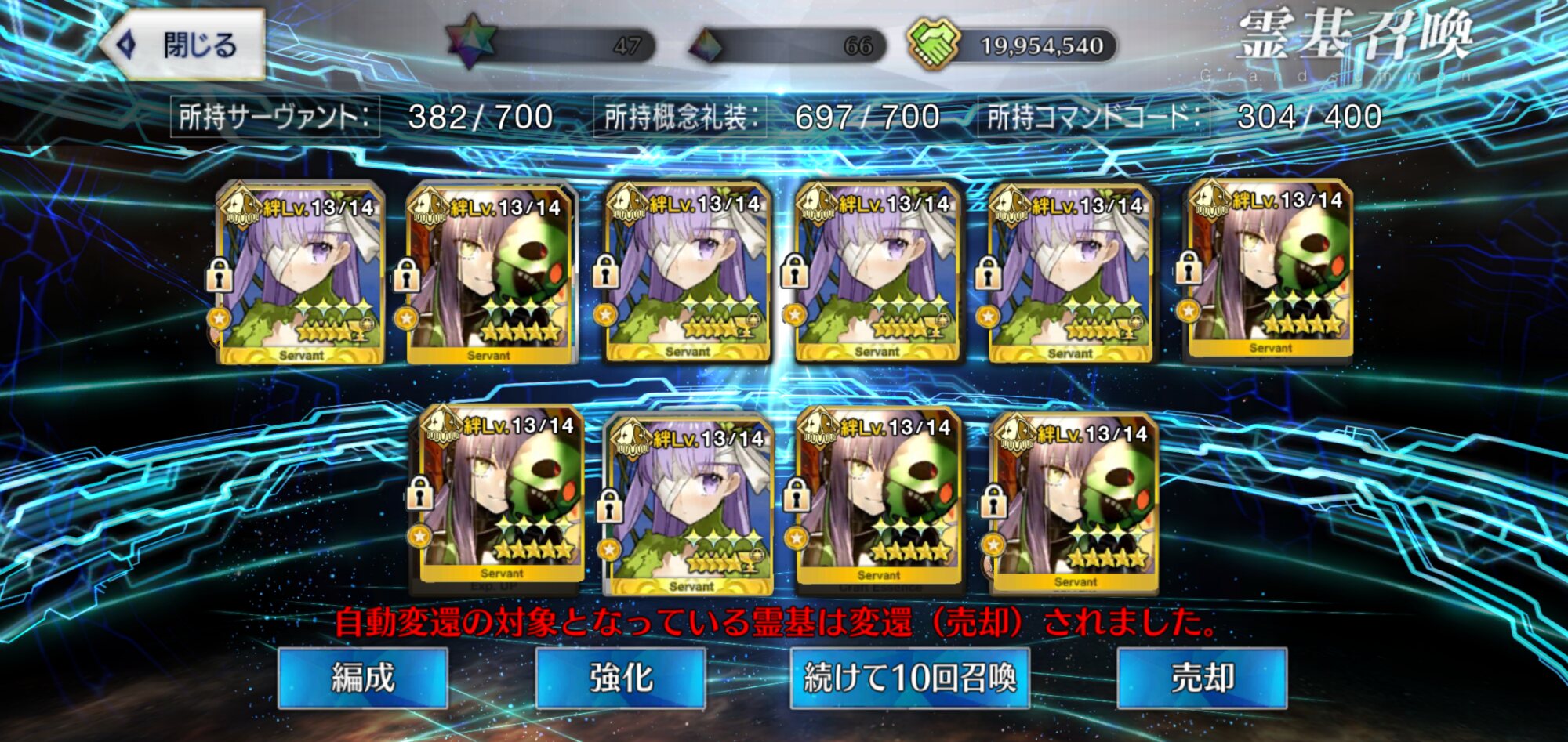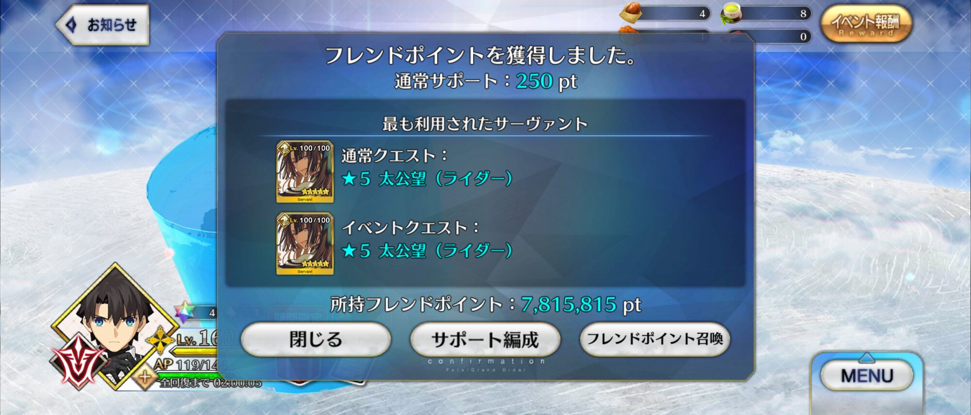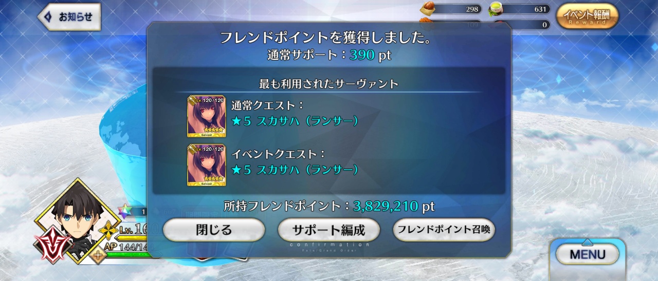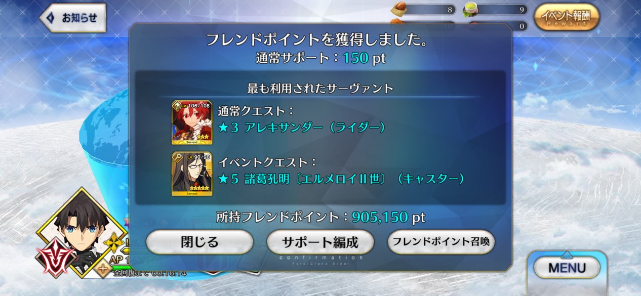 聖杯パワーで強制連行とかこれは今後のイベントで使えるぞ…!当方レベル100以上が12人いるカルデア
