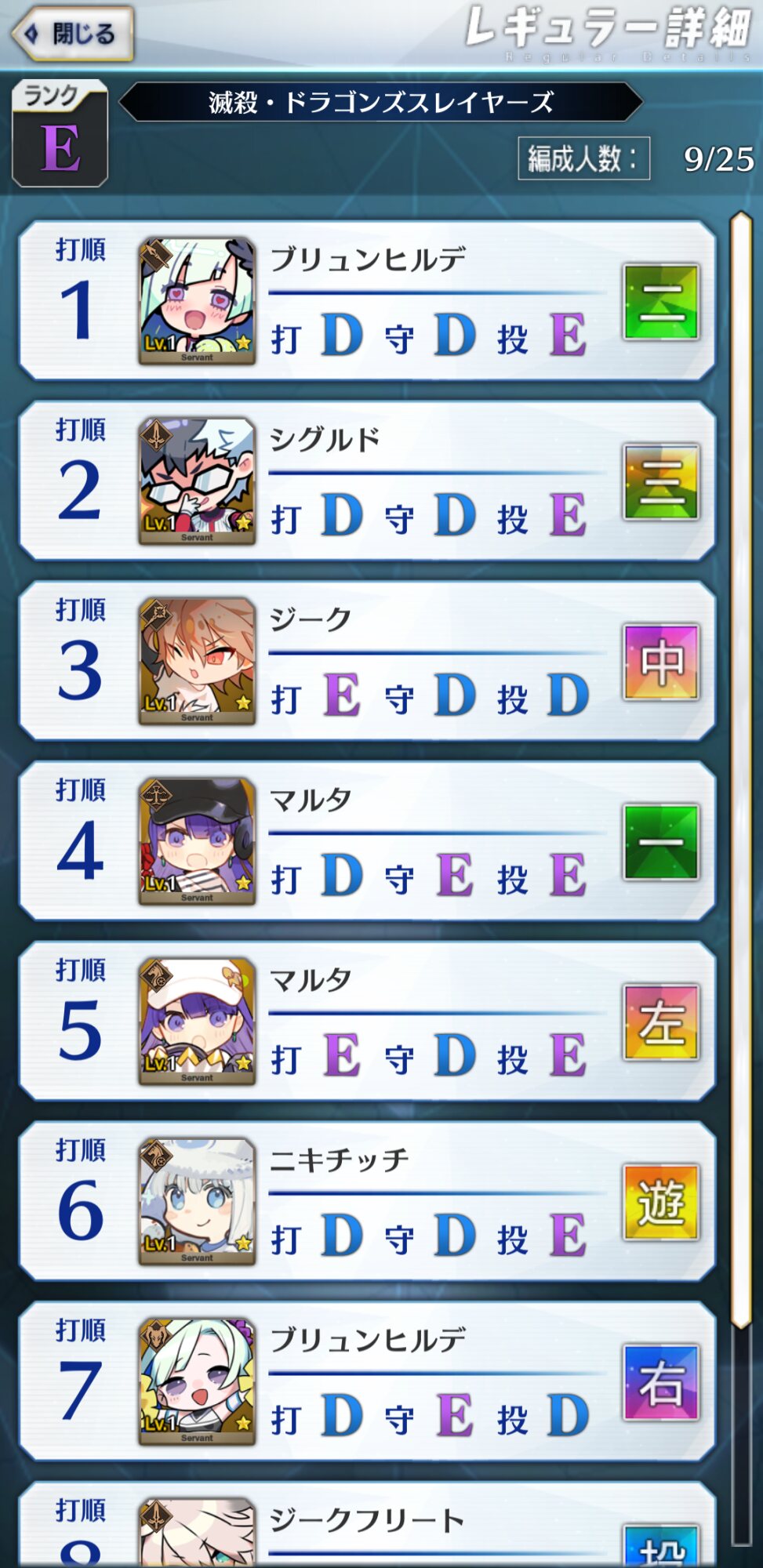 せっかく面白いゲームなのにこんなんじゃサービス終了まで一直線じゃん…明日以降調整入ることを期待キリ様を9番に入れておくだけで守備ターンがヌルゲーと化す