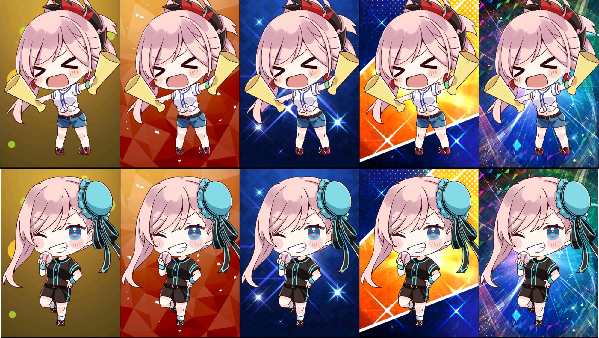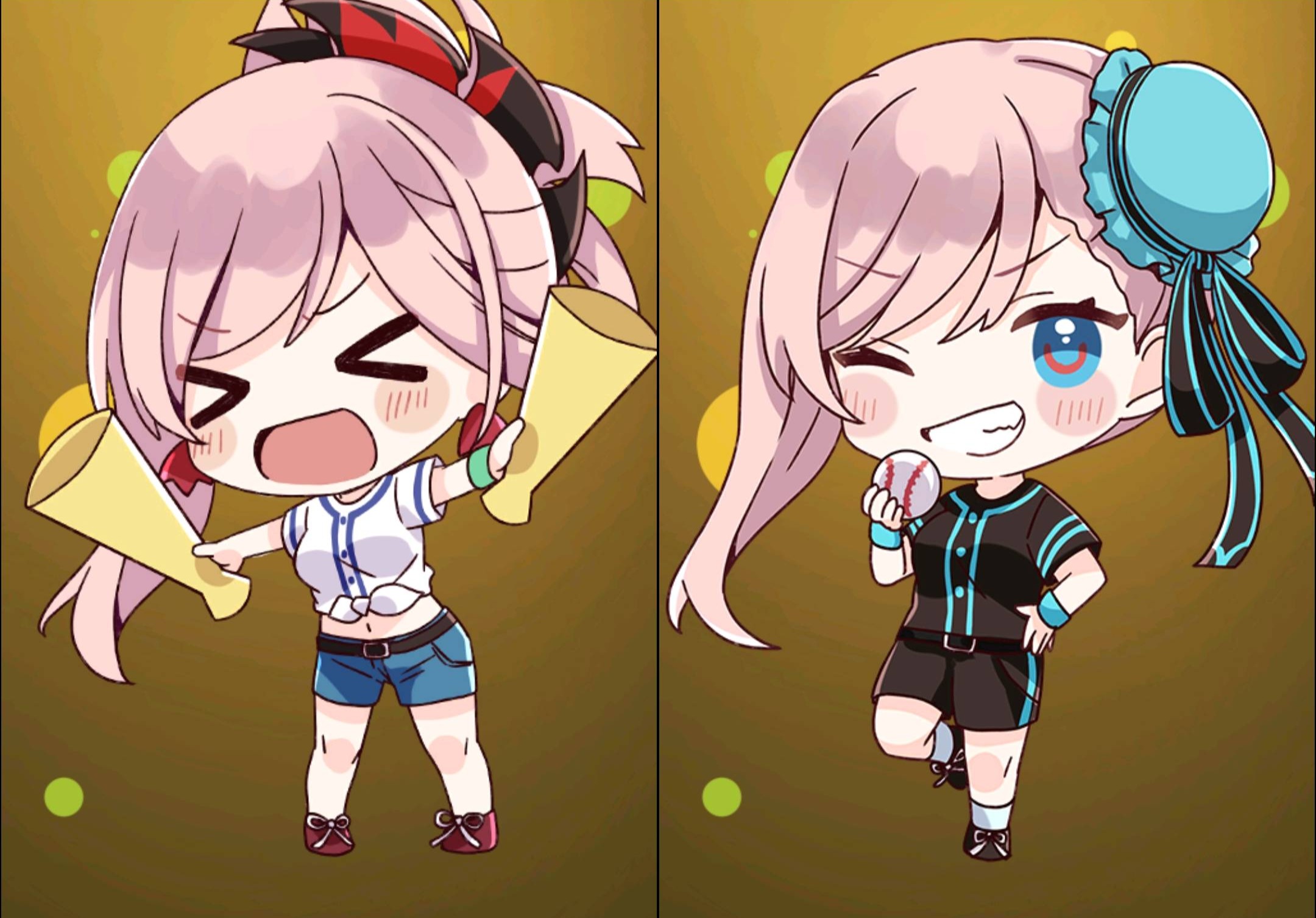 最初に見た時は「独特なスカートの描き方だなぁ」と物凄い的外れなこと思ってたんですけど、よく考えたらスカートで野球やる奴がおるわけないやろがーいと思い至り、脳みそを取り替えました。なんと九九の七の段が暗記できるくらいに性能アップしましたよ。今回のイラストは打者(バット)、投手(ボール)、捕手(ミット)、監督、スタッフ、応援でグループ分けできそう