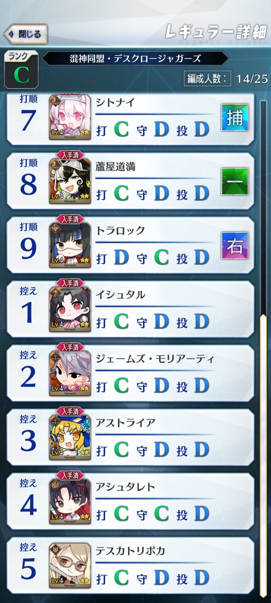 最初のほうにも投稿したけど守備位置変更スキルが集めるときには強いぞ