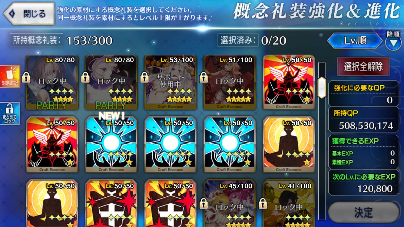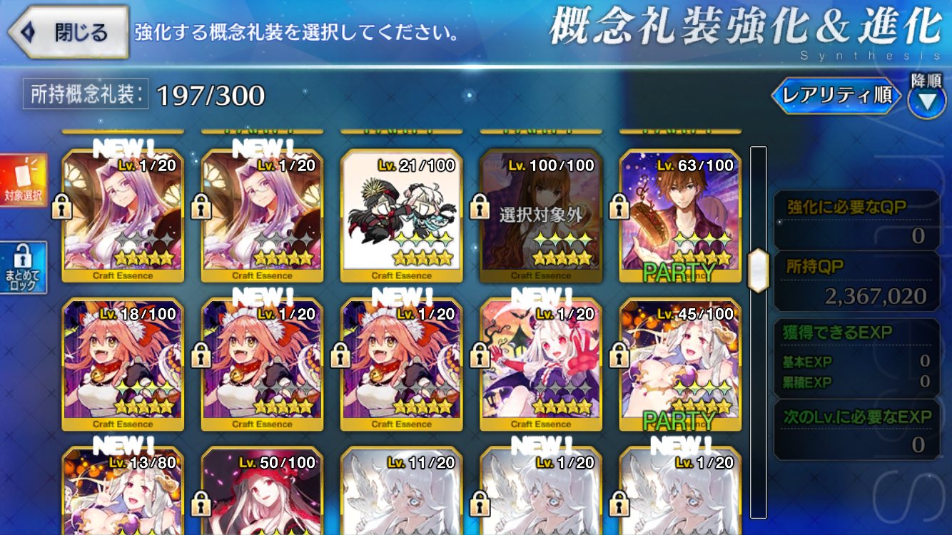 と思ってたら結局どれを上げるものか非常に悩んでしまう。星1礼装に経験値を集中させておくってのは